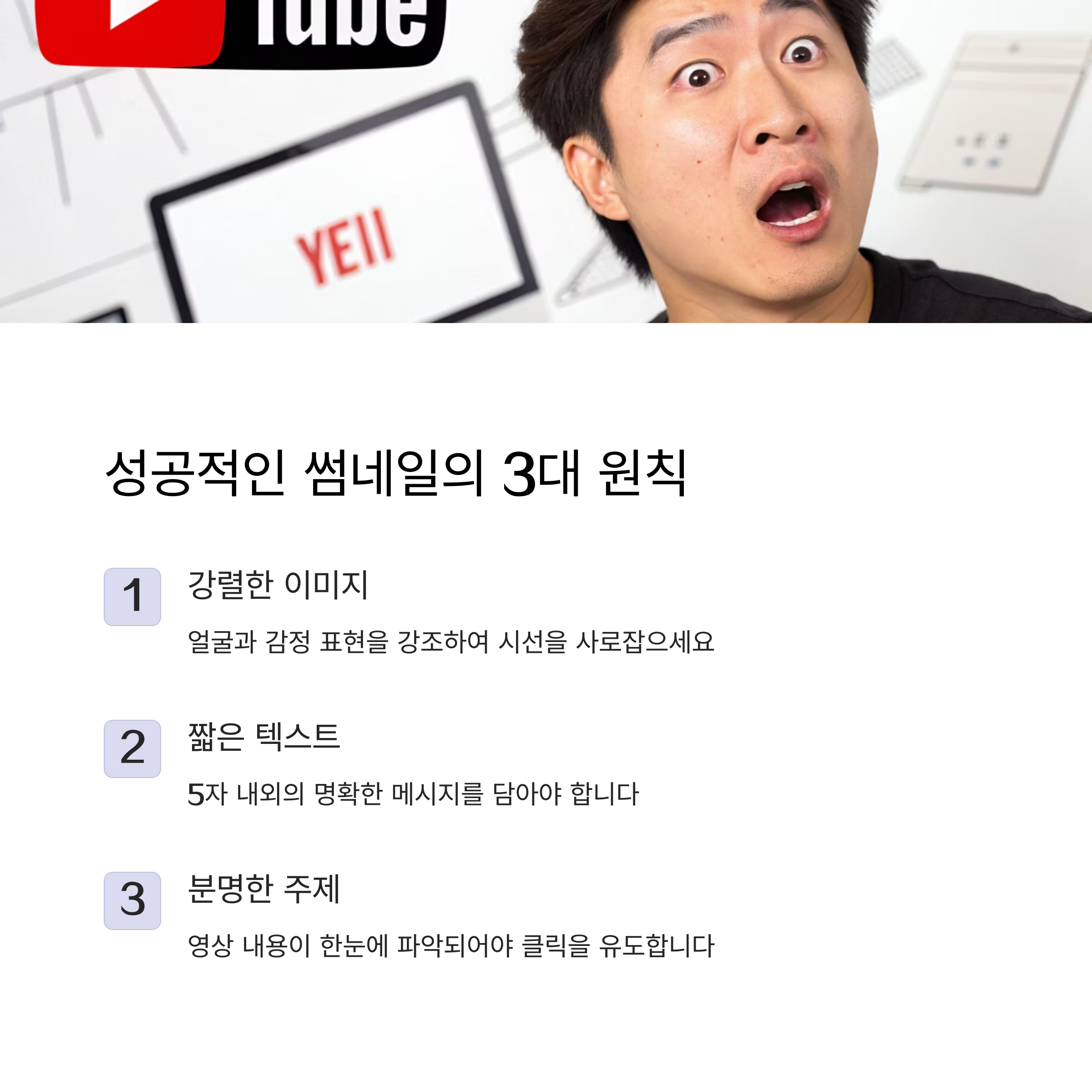 - 썸네일 디자인은 반드시 모바일 화면에서 최종 체크하기