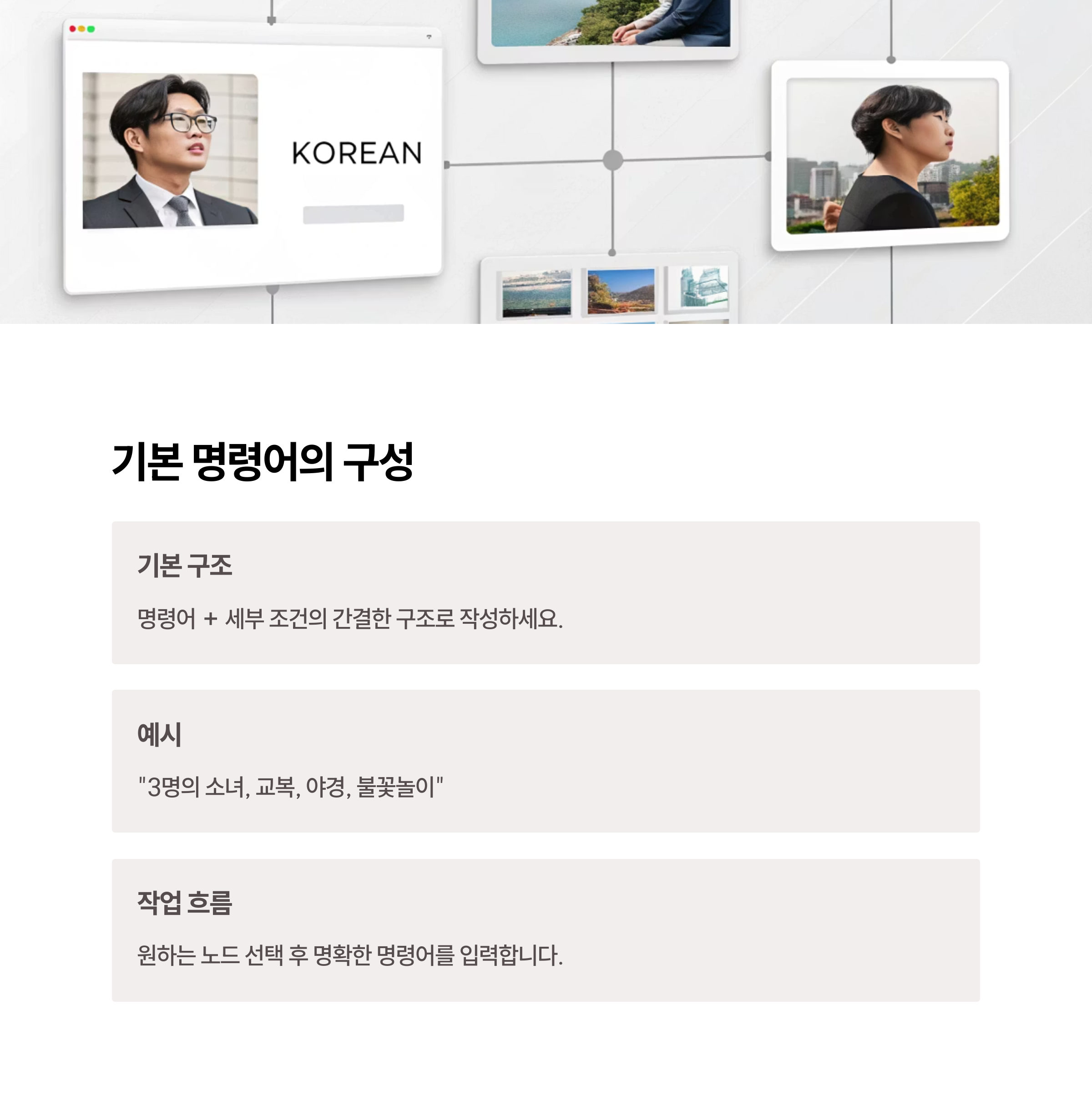 초보자도 쉽게 다룰 수 있도록 다양한 프롬프트 템플릿과 명령 구조가 미리 준비되어 있어