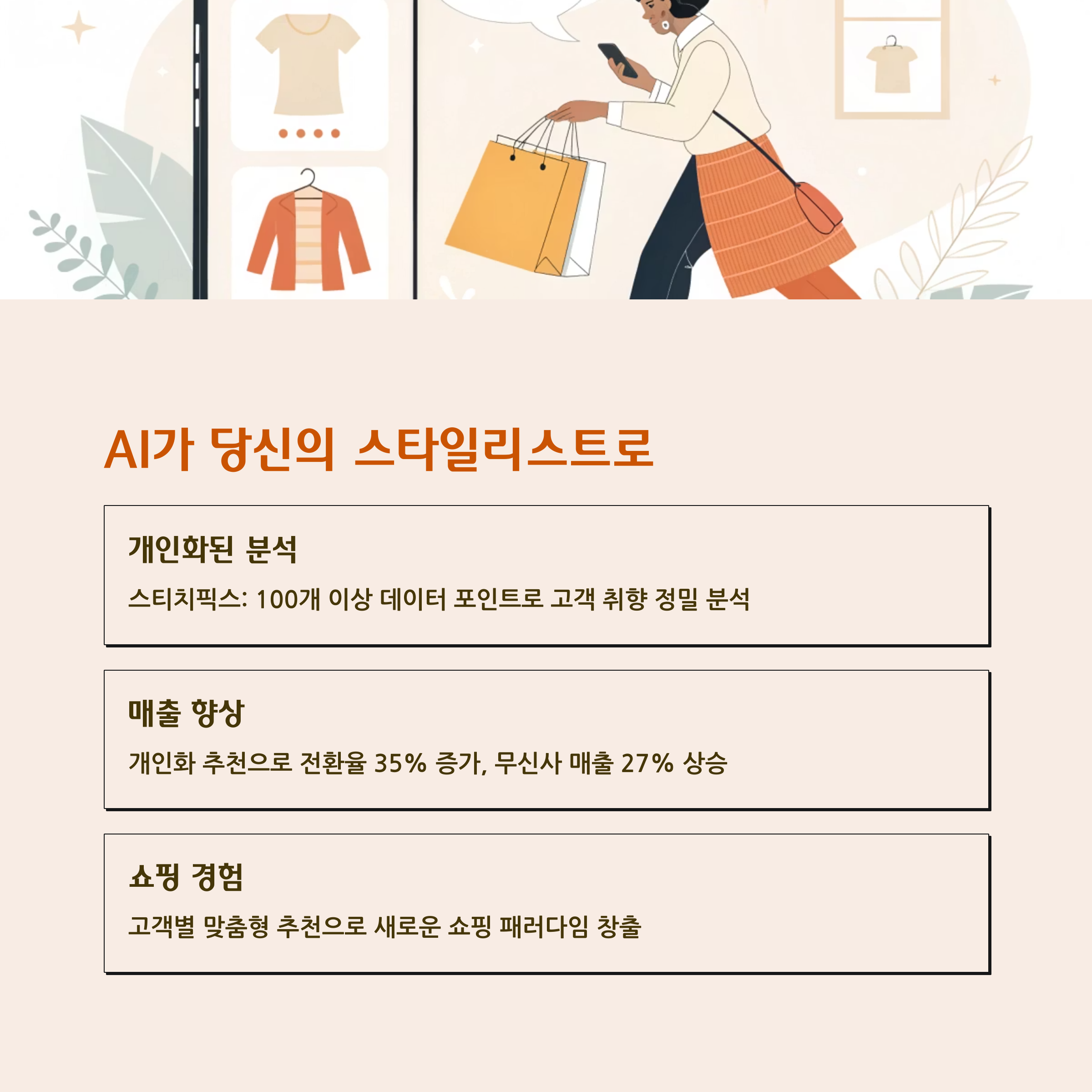 AI 스타일 추천 시스템은 고객의 구매 이력, 검색 패턴, 심지어 소셜미디어 활동까지 분석하여