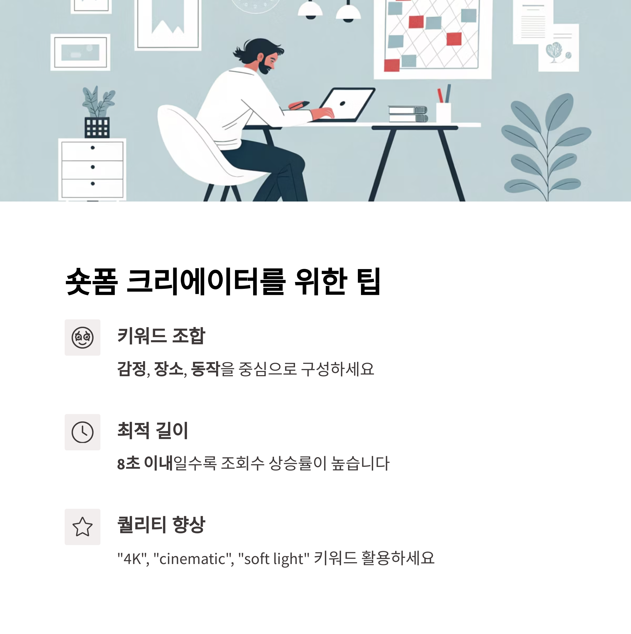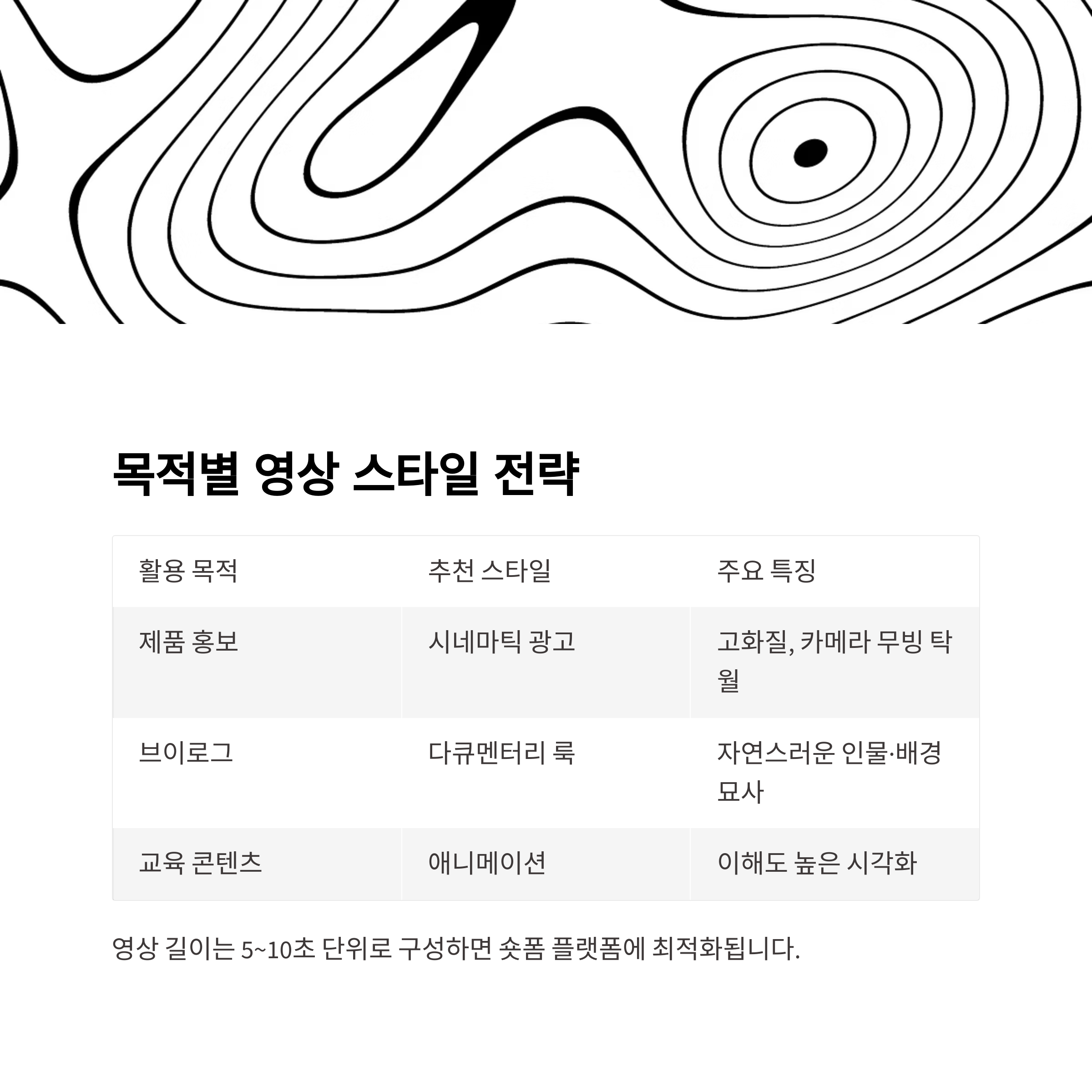 특히 숏폼 콘텐츠 제작에 적합한 이유는 짧고 강렬한 메시지를 시각적으로 빠르게 구현할 수 있기 때문입니다.
