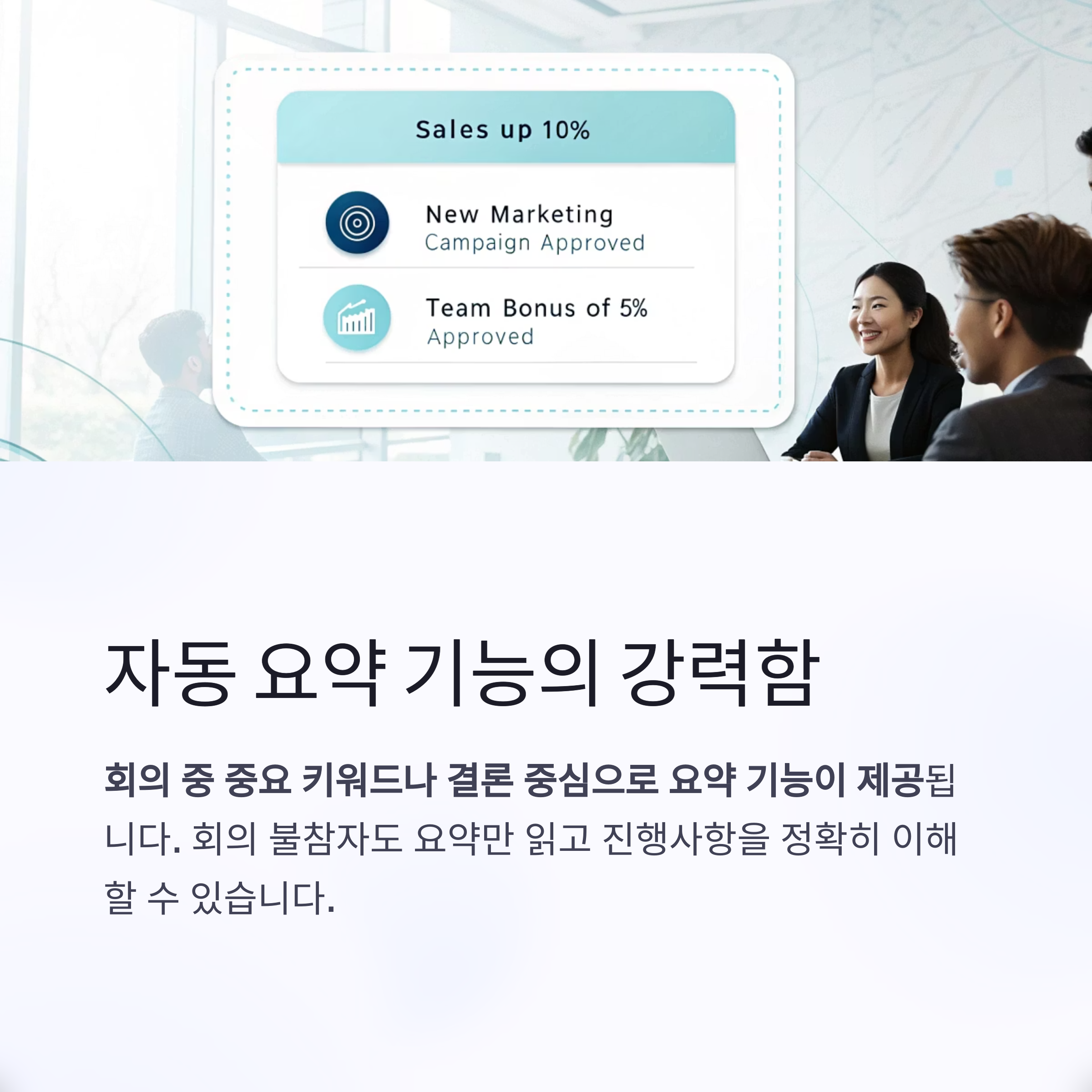 "요약 덕분에 불참자도 바로 파악 가능해서 회의 리마인드가 줄었습니다."