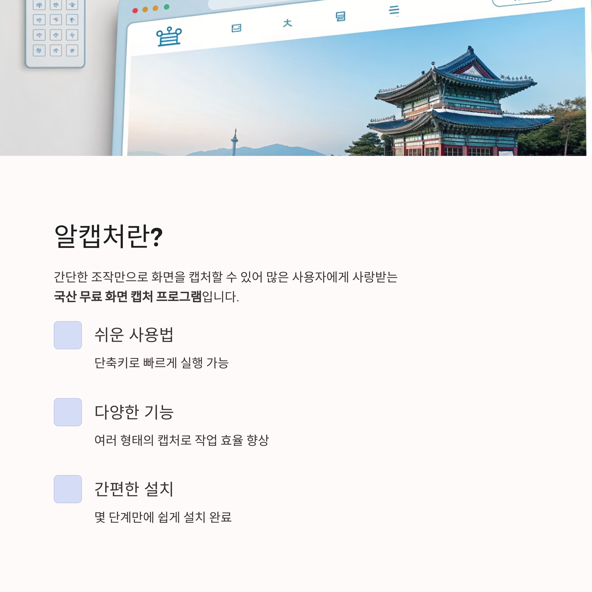 이 글에서는 알캡처의 핵심 기능부터 단축키 사용법, 다양한 캡처 방식까지 총정리하여