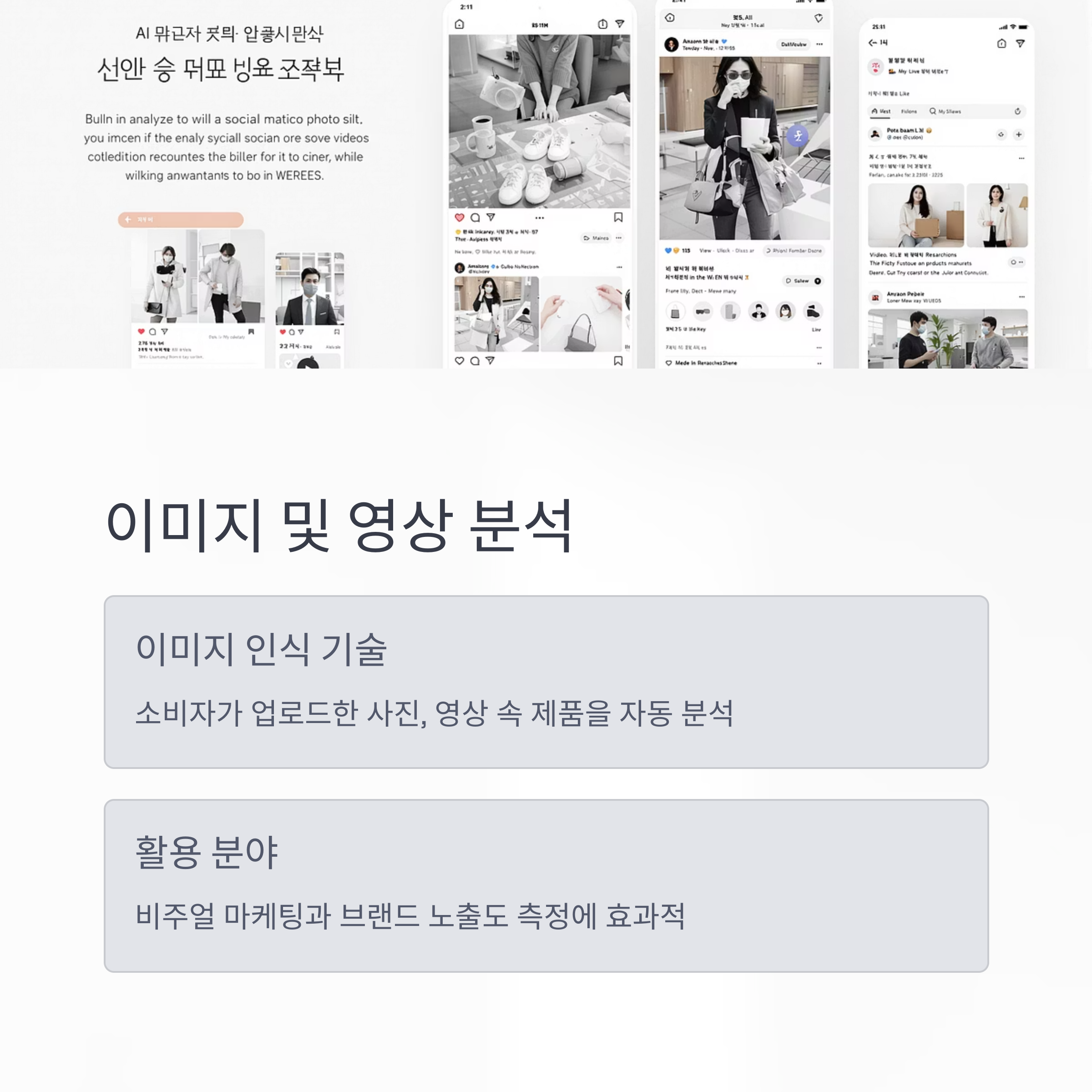 AI는 이미지 인식 기술로 소비자가 업로드한 사진, 영상 속 제품을 자동 분석합니다