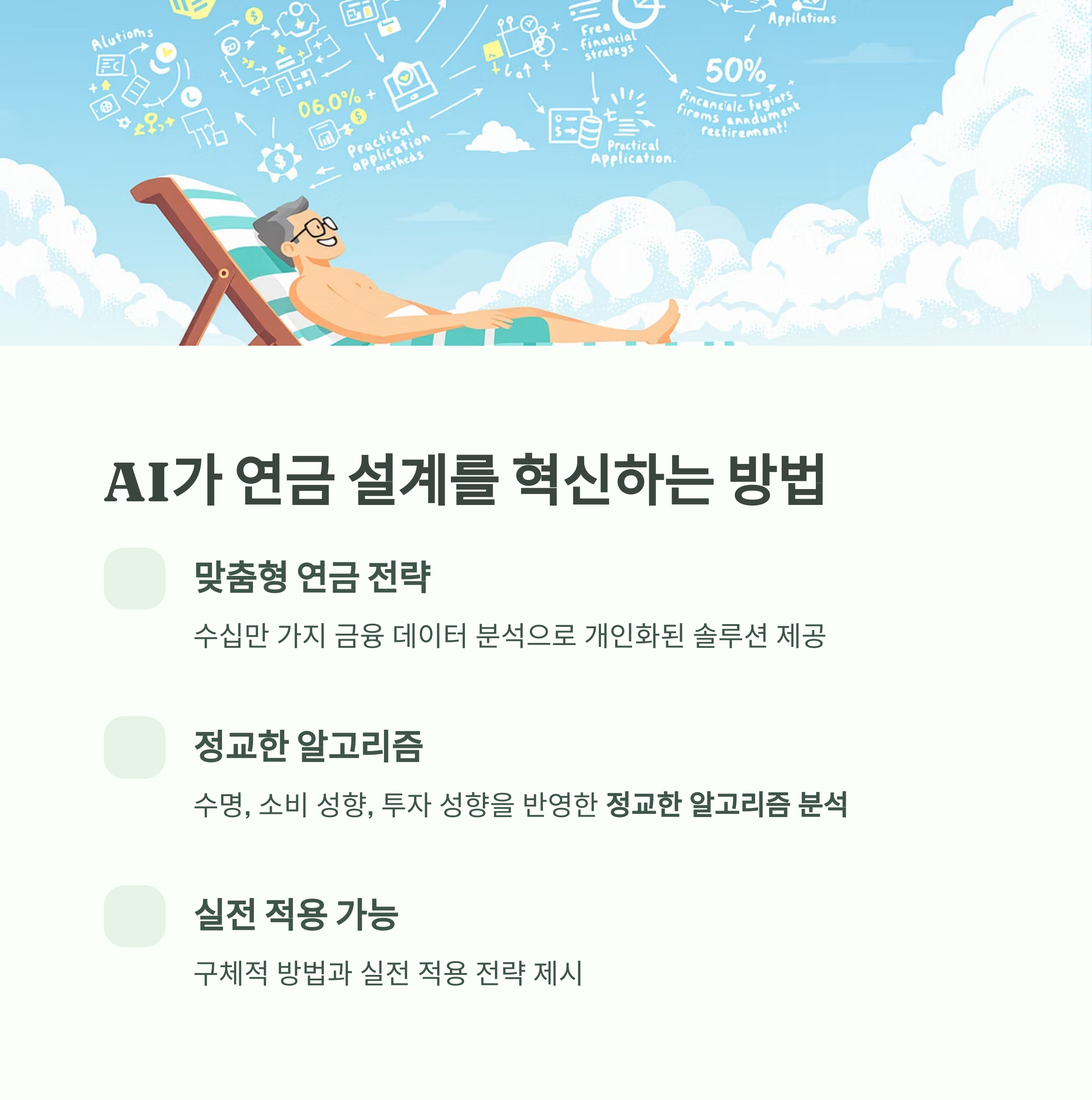 AI는 수십만 가지 금융 데이터를 분석해 맞춤형 연금 전략을 제시합니다