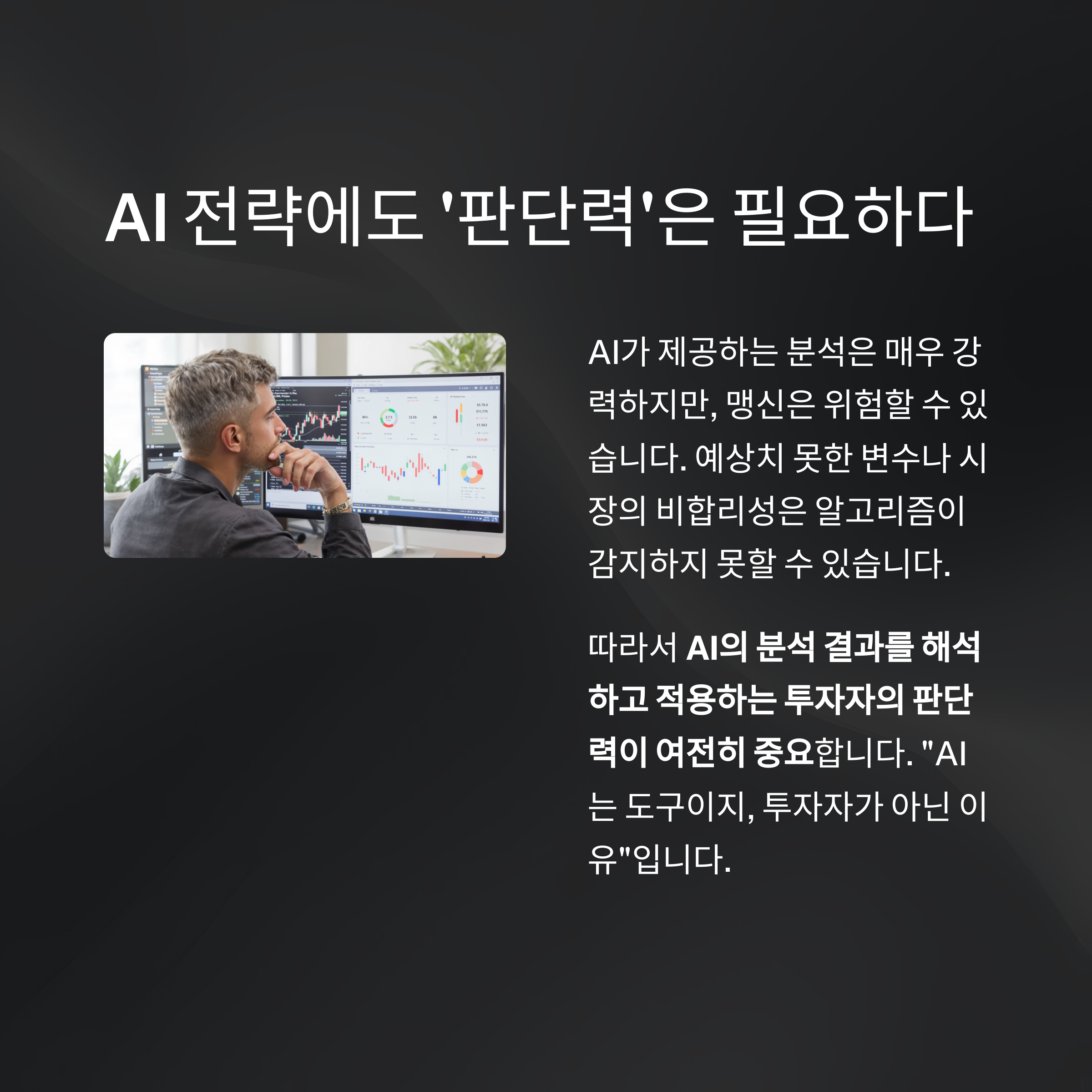 따라서 AI의 분석 결과를 해석하고 적용하는 투자자의 판단력이 여전히 중요합니다