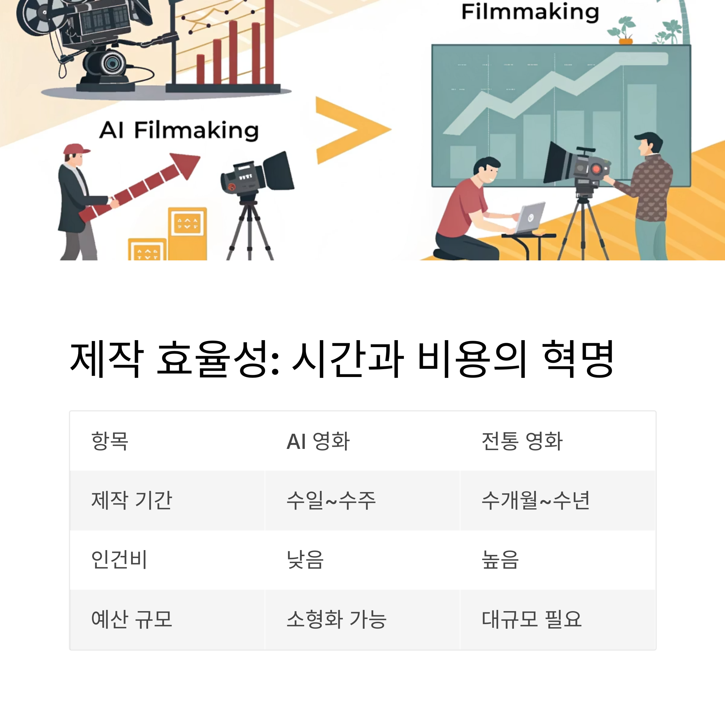 중요: 제작 효율성 측면에서 AI 영화가 전통 영화를 압도합니다