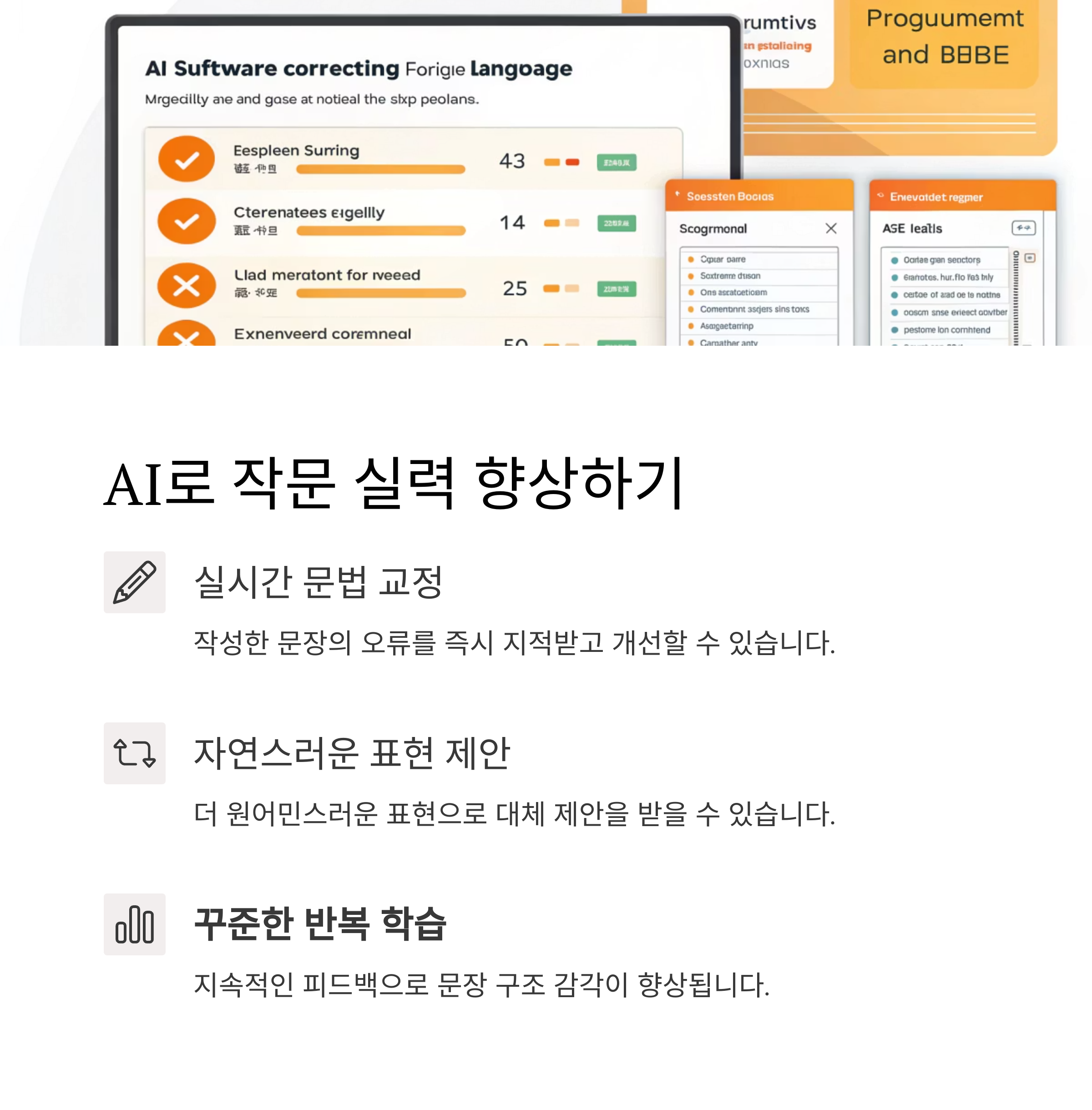 자신이 작성한 문장에 대해 실시간으로 교정과 피드백을 받을 수 있습니다