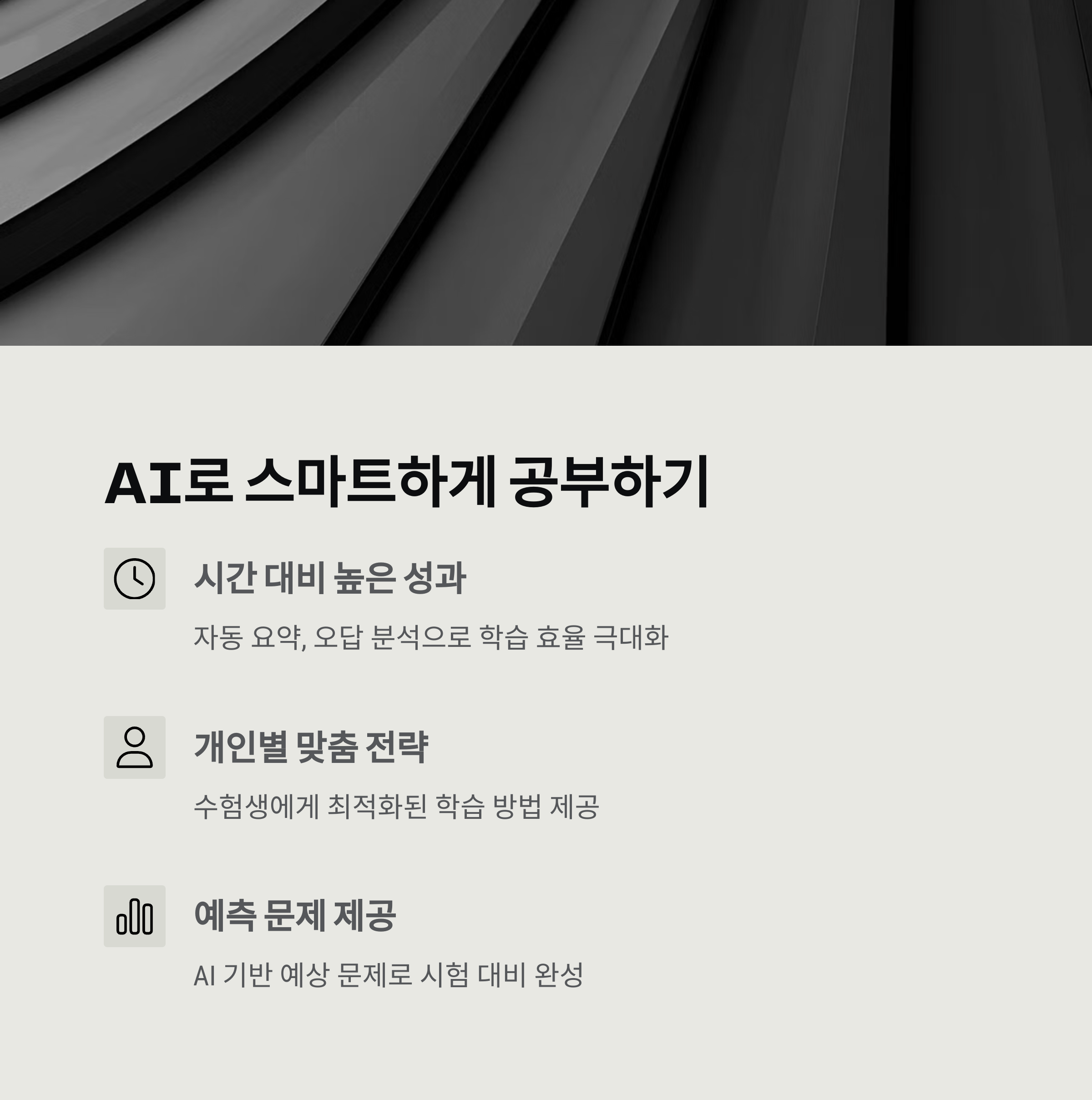 자동 요약, 오답 분석, 예측 문제 제공 등 다양한 기능이 시험 대비에 도움을 줍니다