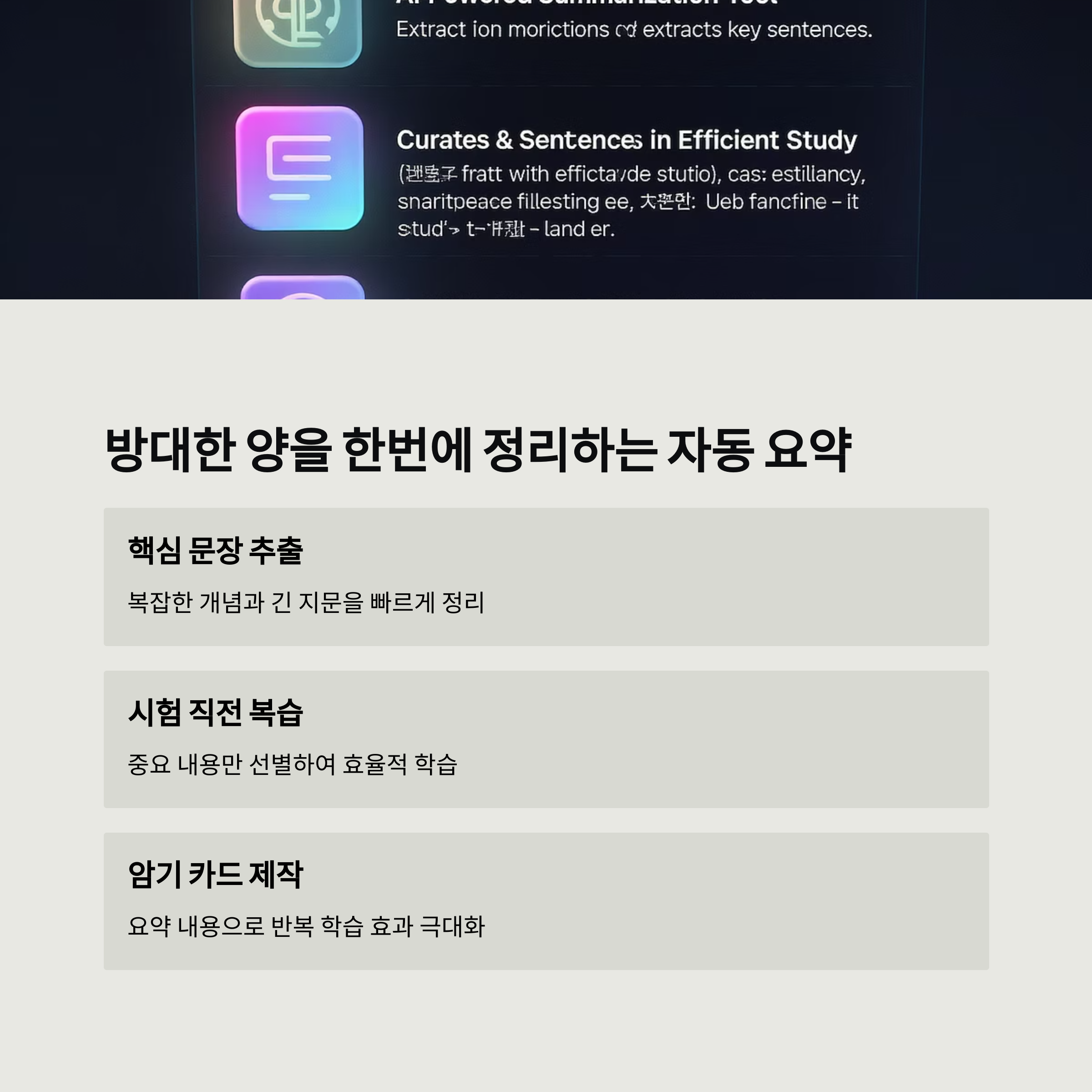 핵심 문장만 추출해 주므로 시험 직전 복습에 매우 유리합니다