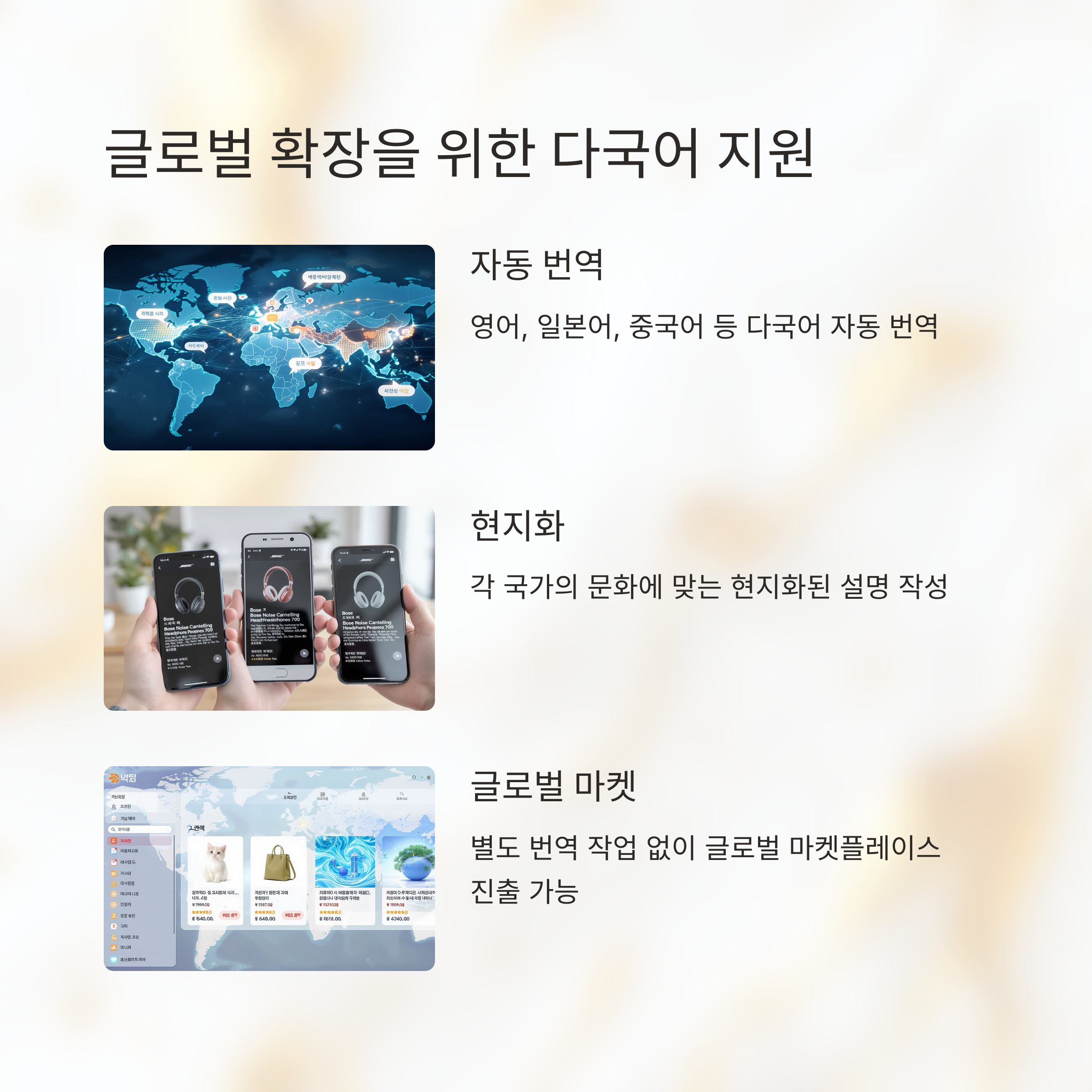 다국어로 자동 번역 및 현지화된 설명 작성도 가능합니다.
