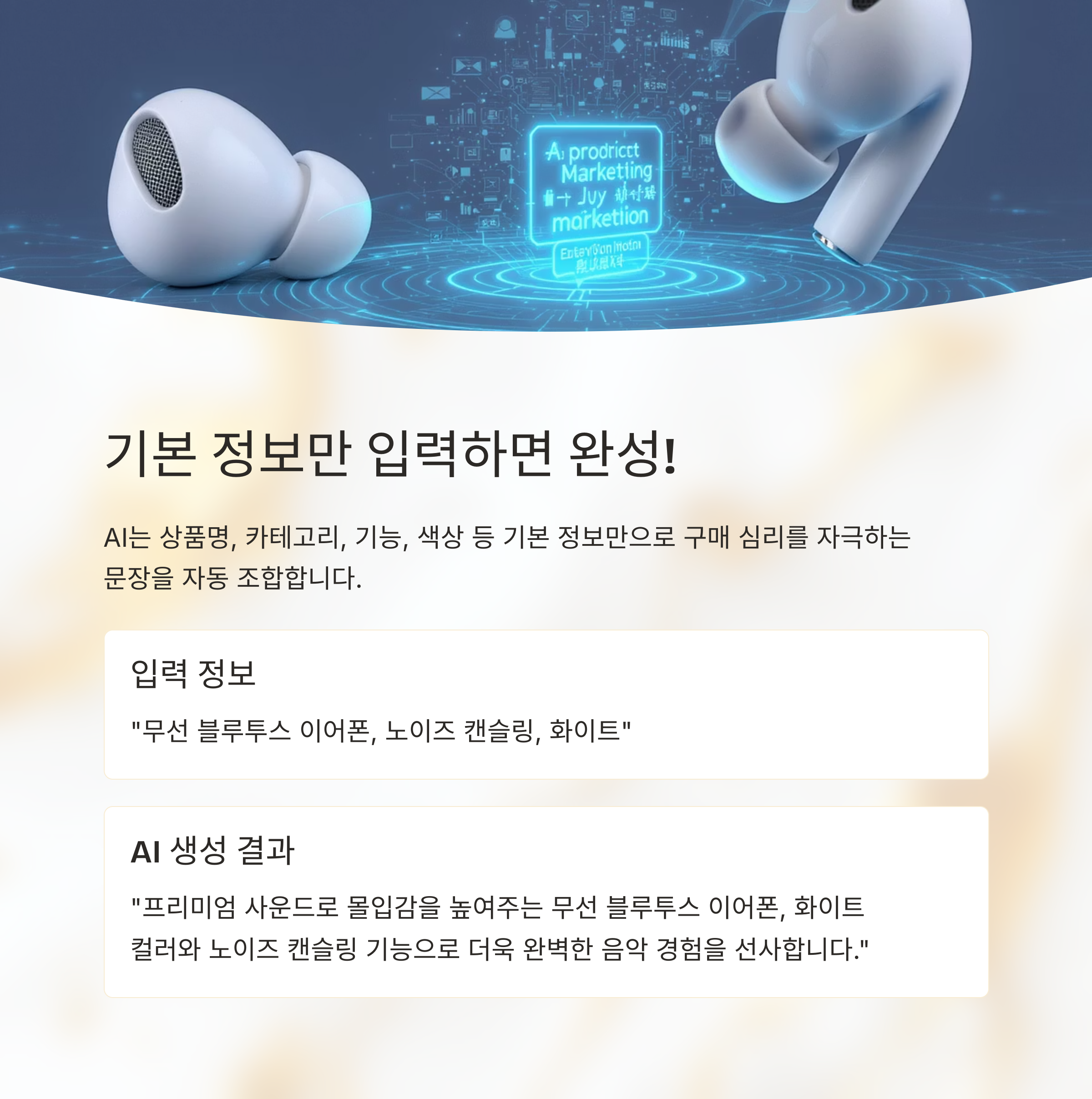 고객의 구매 심리를 자극하는 문장을 자동으로 조합합니다.