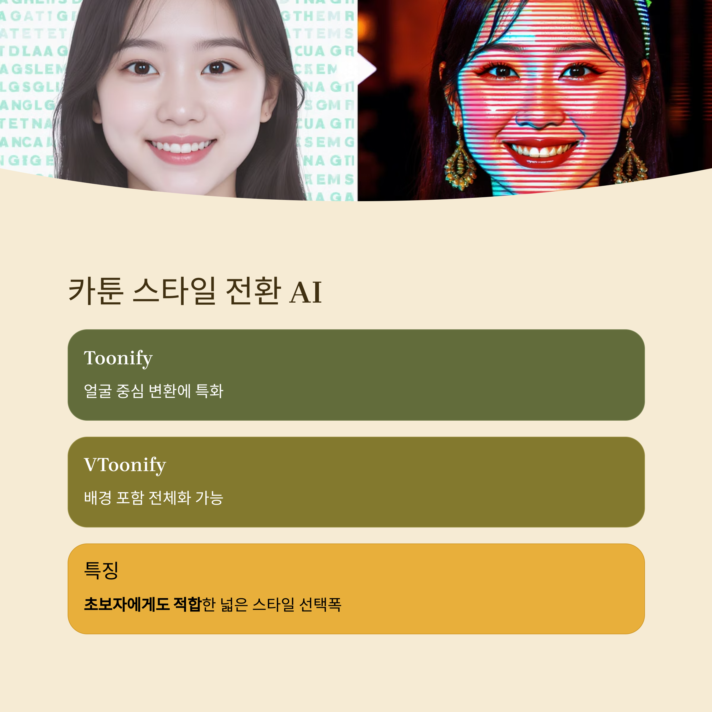 실제 인물이나 배경을 자동으로 디즈니 스타일, 웹툰 스타일로 전환해