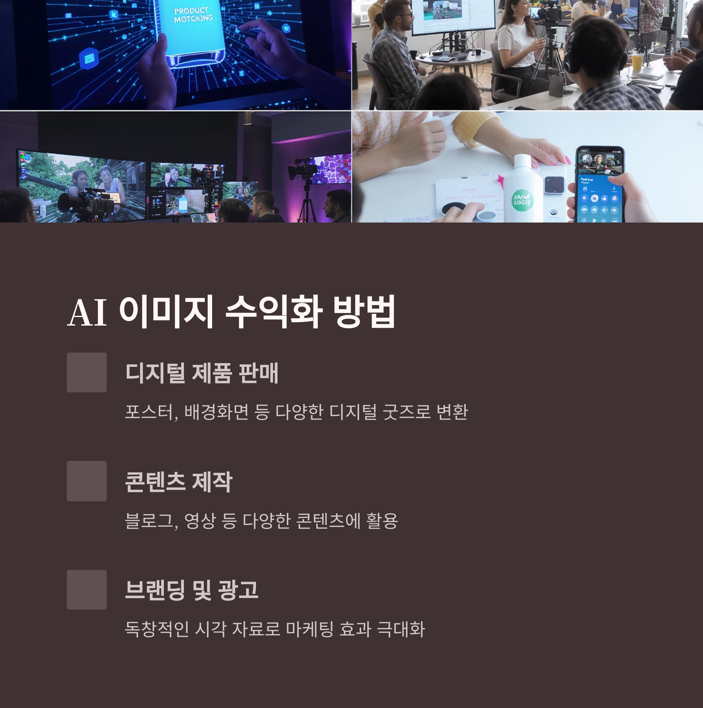 AI 이미지를 활용한 수익화는 디지털 제품 판매, 콘텐츠 제작,