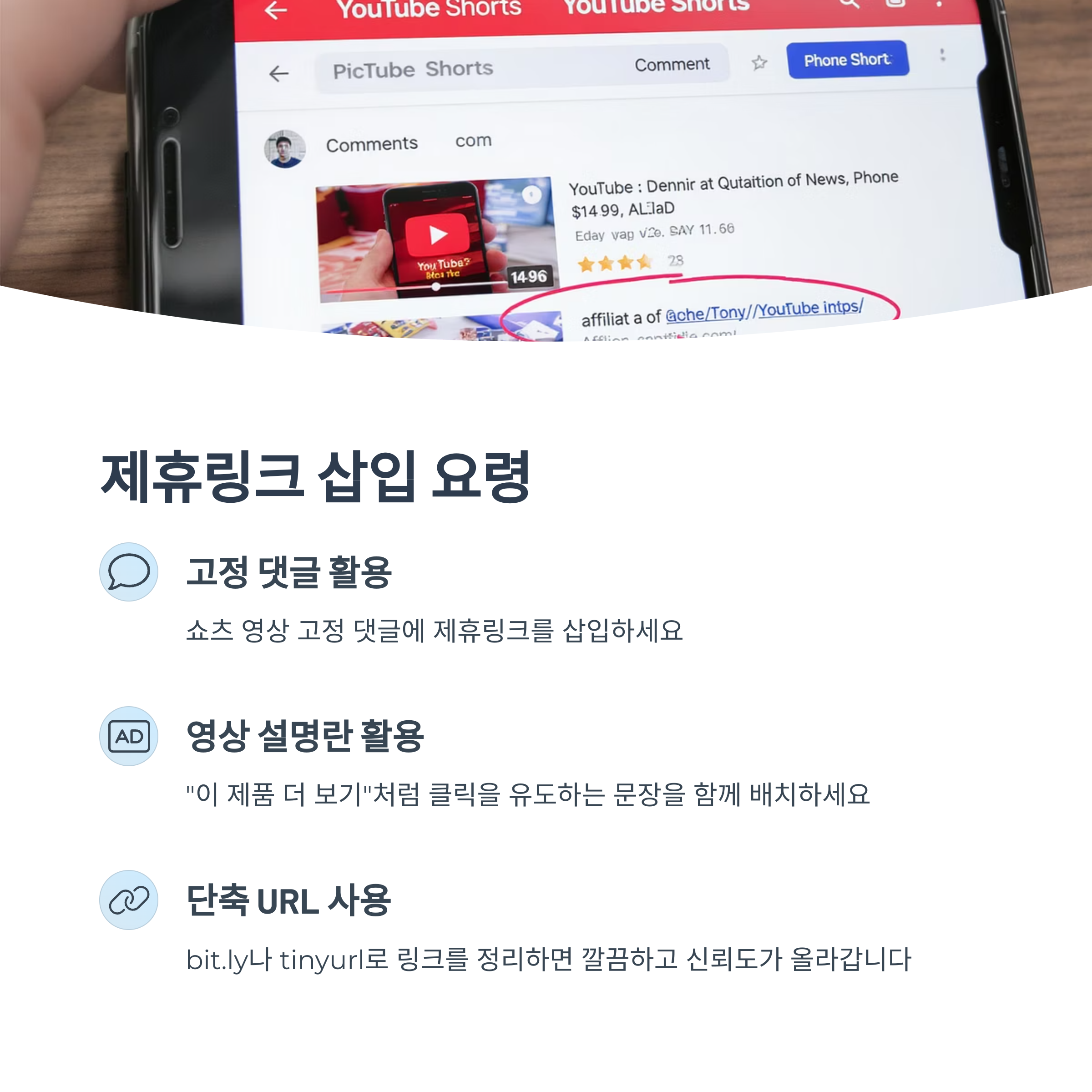 고정 댓글이나 영상 설명란에 제휴링크를 넣는 것이 핵심 전략입니다.