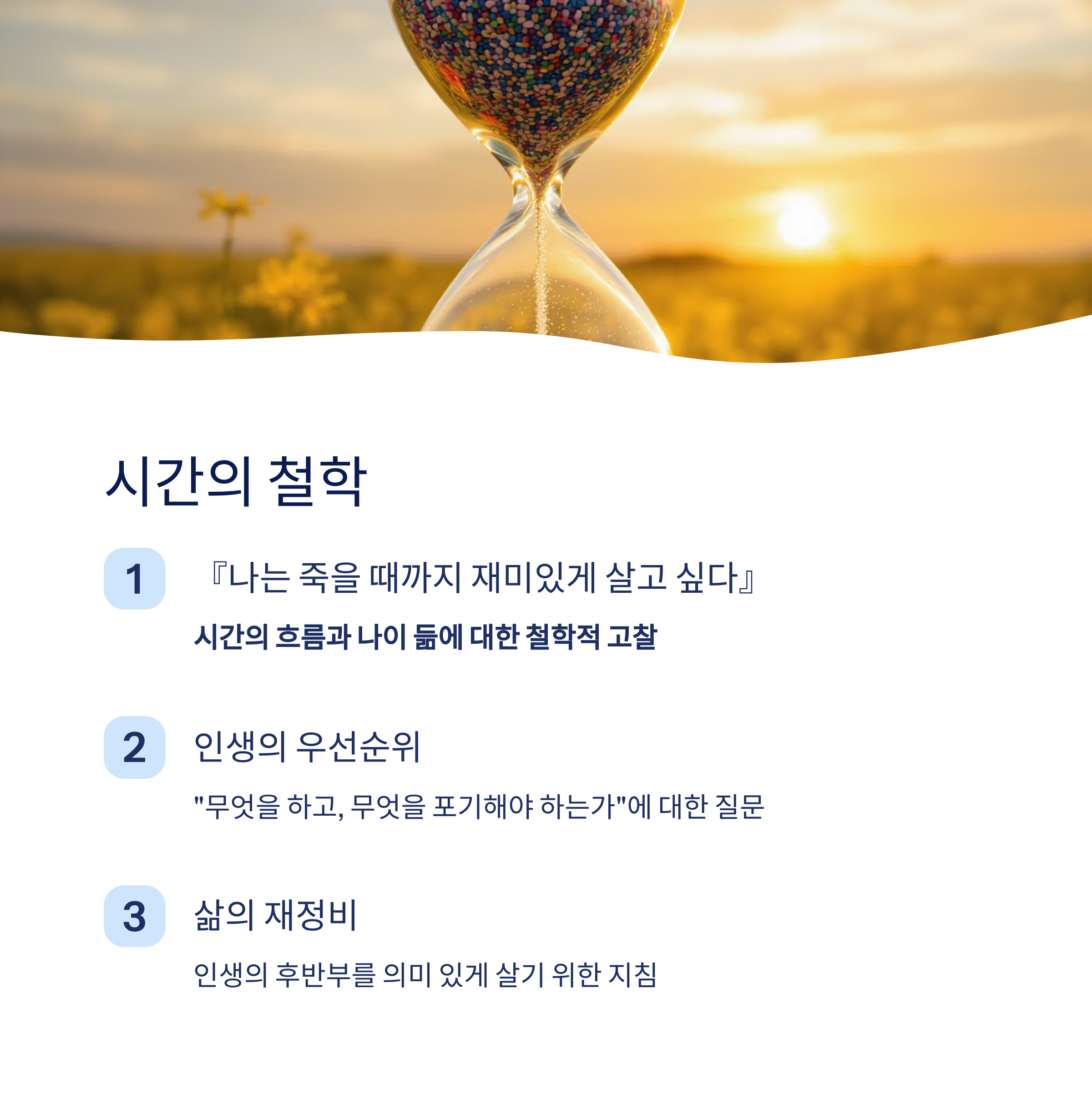 시간의 흐름과 나이 듦에 대한 철학적 고찰이 담긴 책입니다