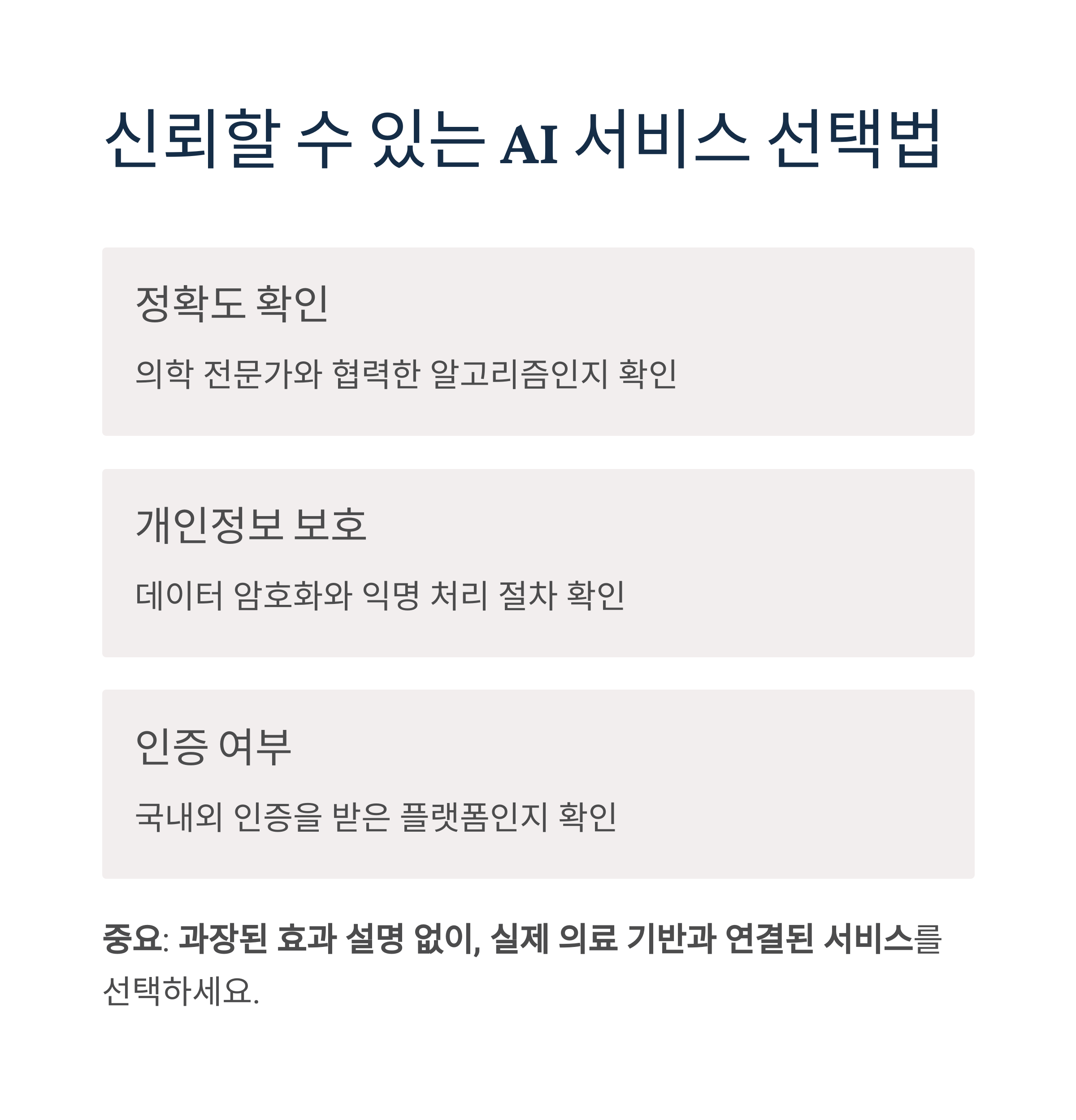 중요: 과장된 효과 설명 없이, 실제 의료 기반과 연결된 서비스를 선택하세요