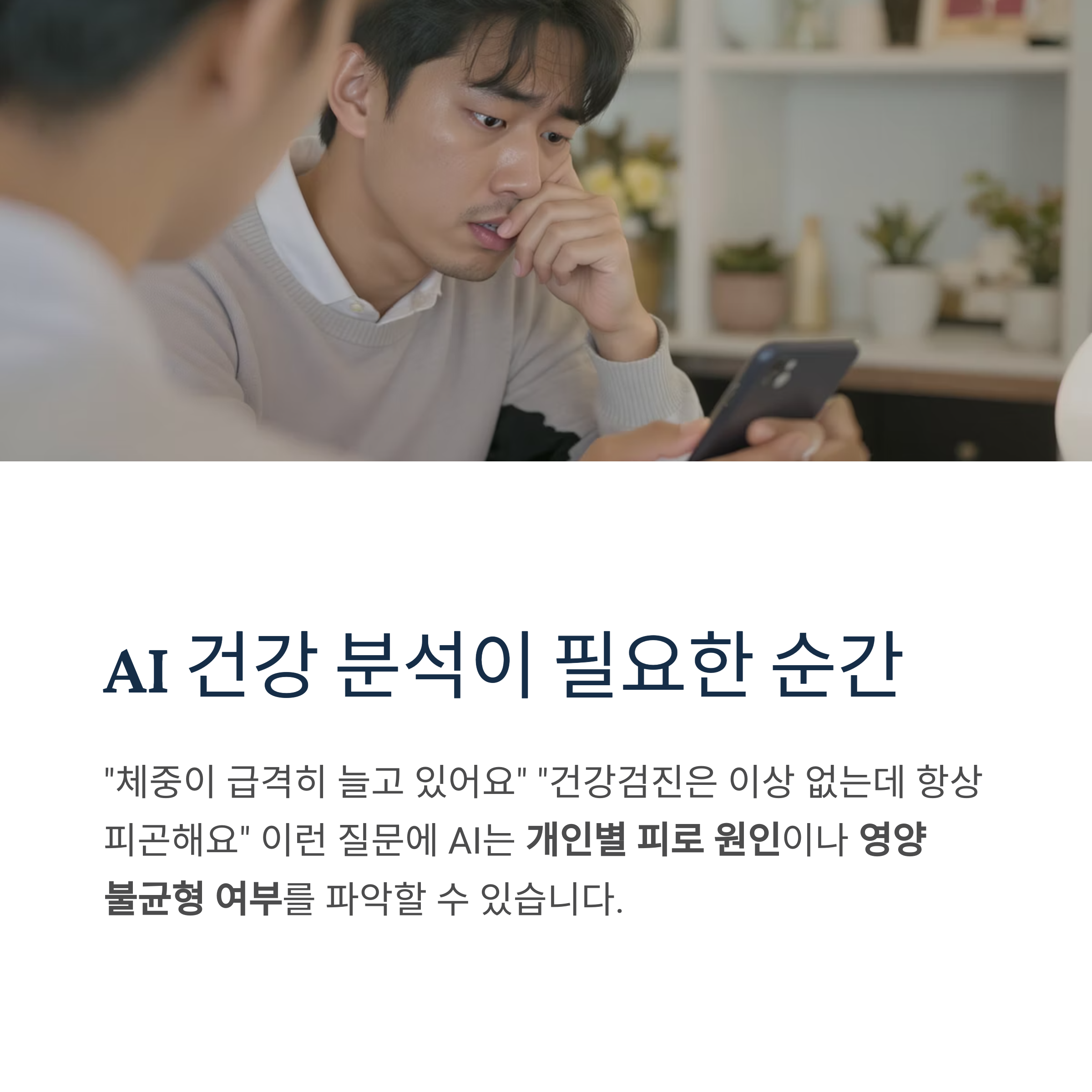 생활 데이터를 분석해 개인별 피로 원인이나 영양 불균형 여부를 파악할 수 있습니다