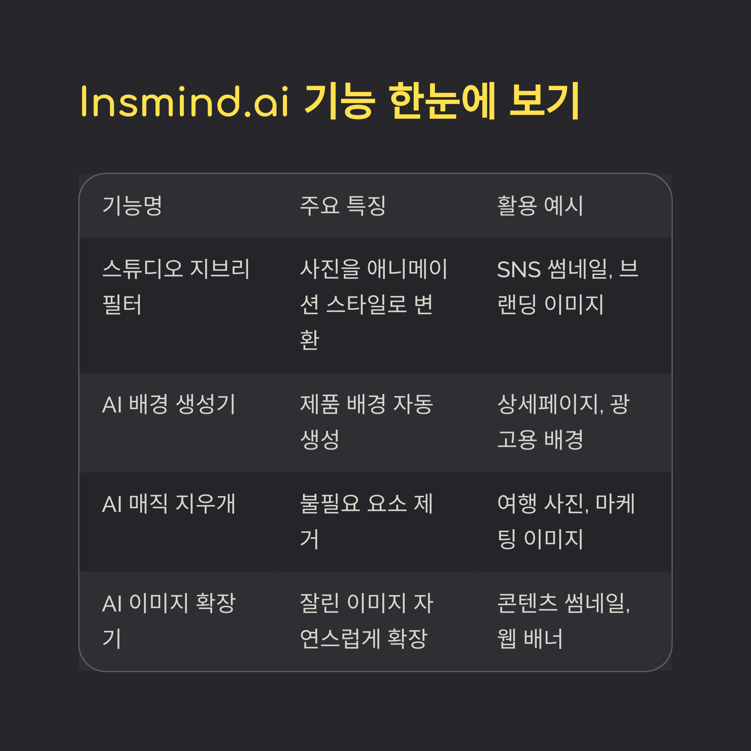 Insmind.ai 핵심 기능 비교