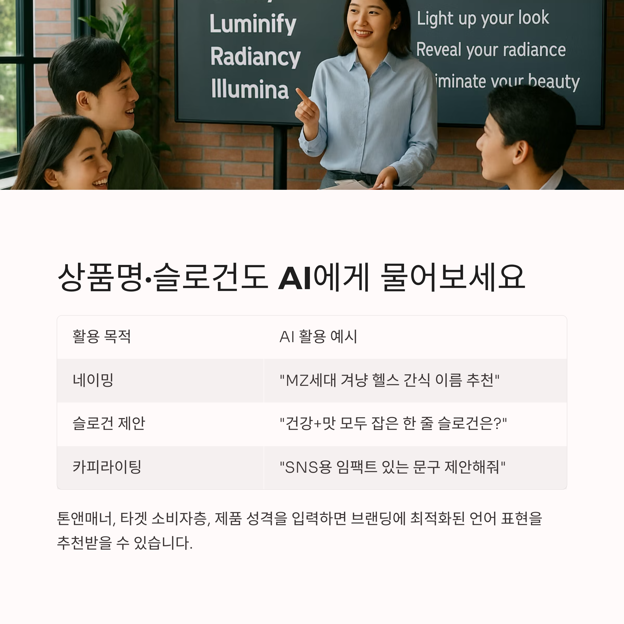 신상품의 이름, 브랜드 슬로건도 AI에게 제안받을 수 있습니다.