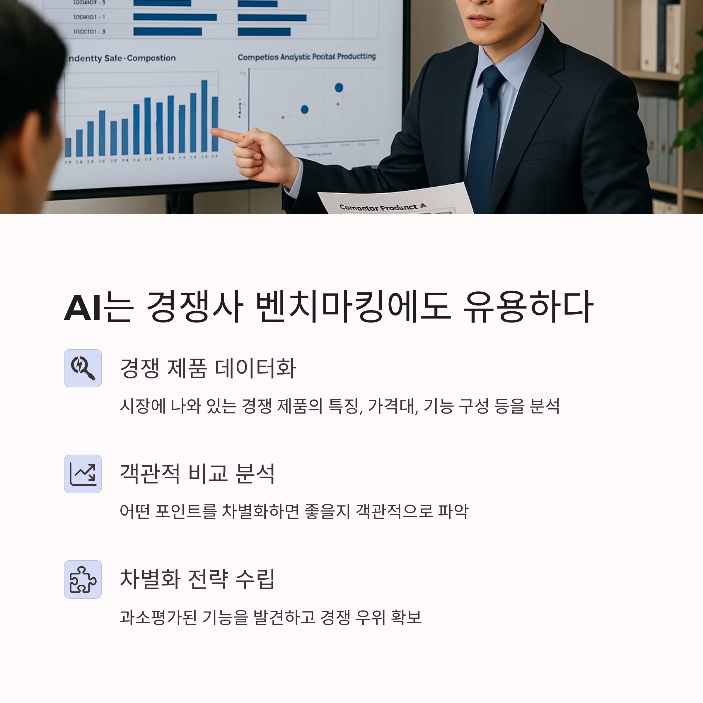 AI는 시장에 나와 있는 경쟁 제품의 특징, 가격대, 기능 구성 등을
