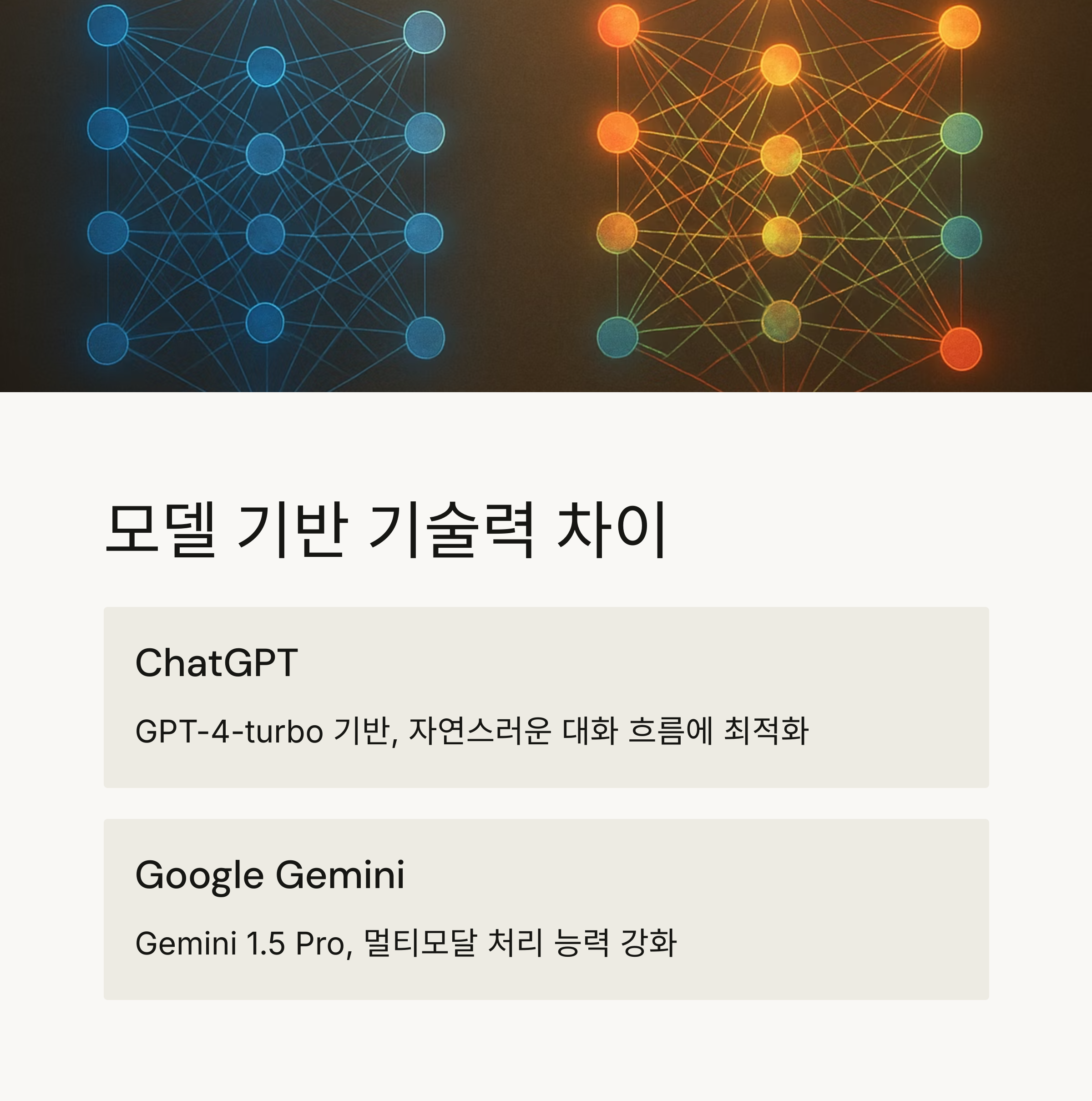 반면 Google Gemini는 자체 PaLM 2 기반으로 출발하여
