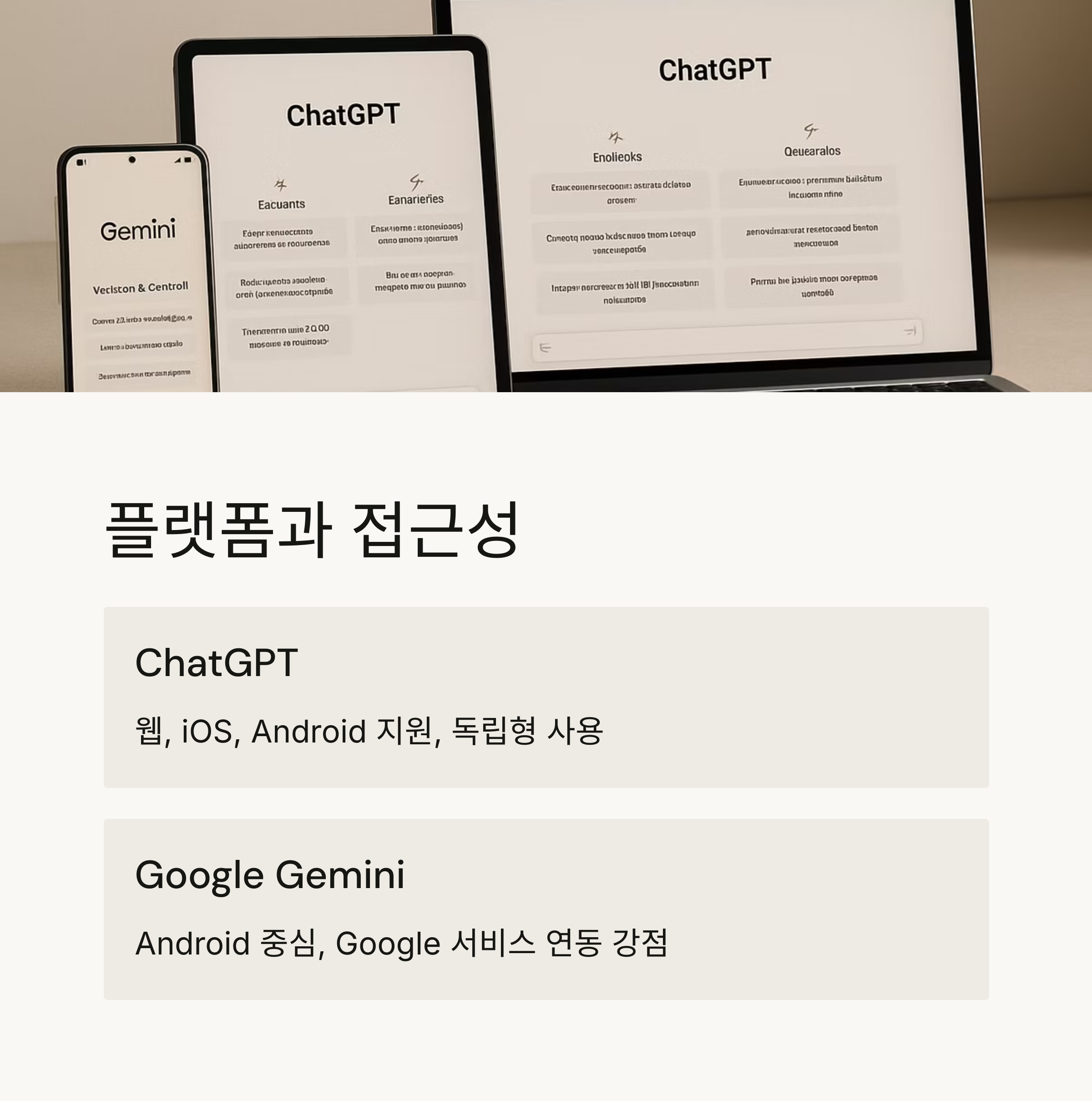 | 접근 플랫폼 | ChatGPT | Google Gemini |