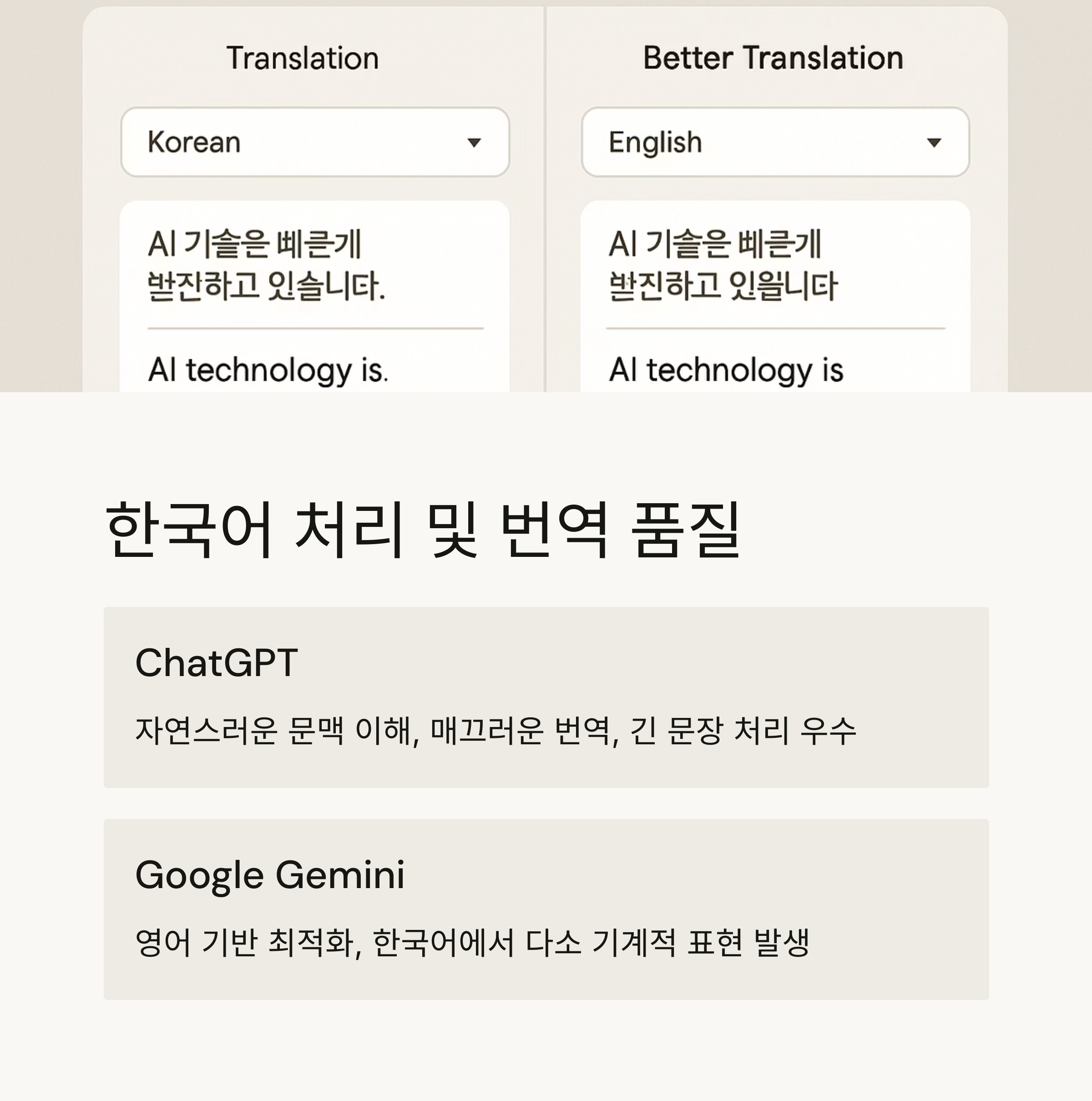 | 한국어 자연성 | 매우 자연스러움 | 다소 기계적 표현 |