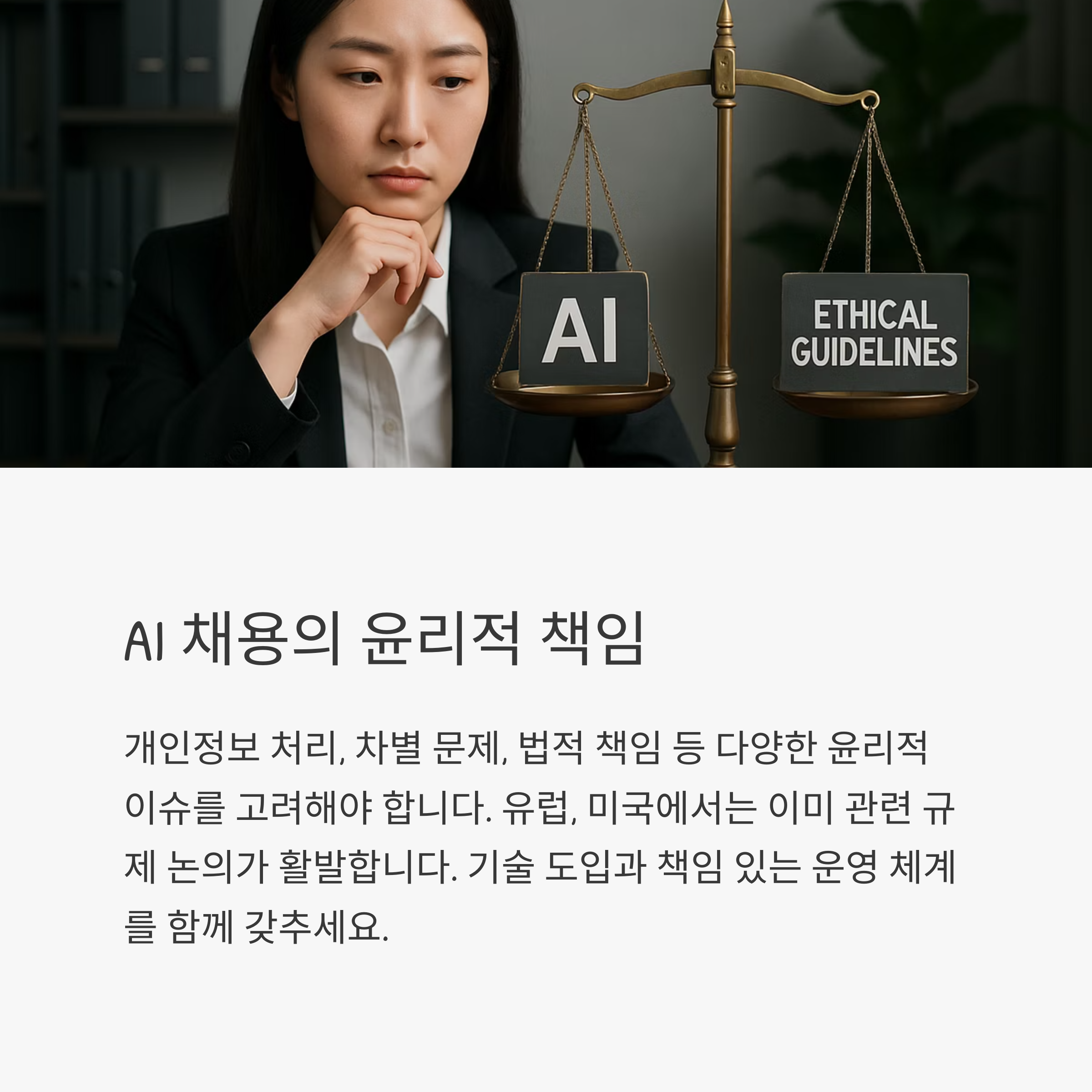 AI 채용은 개인정보 처리, 차별 문제, 법적 책임 등