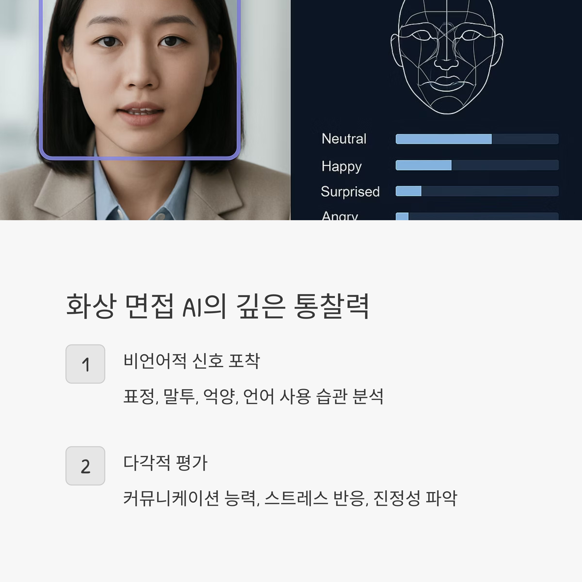 화상 면접 솔루션은 표정, 말투, 억양, 언어 사용 습관 등을 분석하여