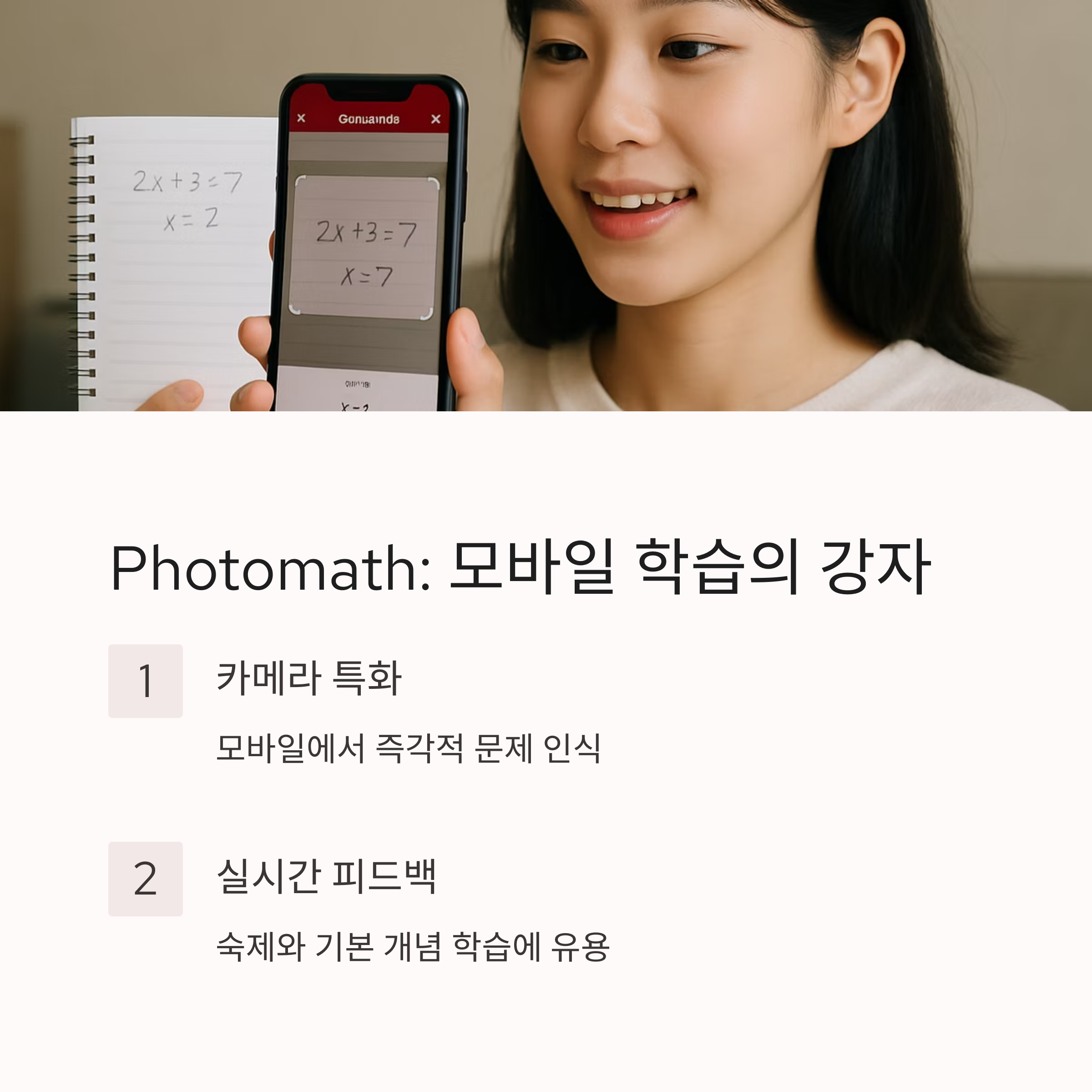 Photomath는 카메라 기반 문제 인식에 매우 특화되어 있어