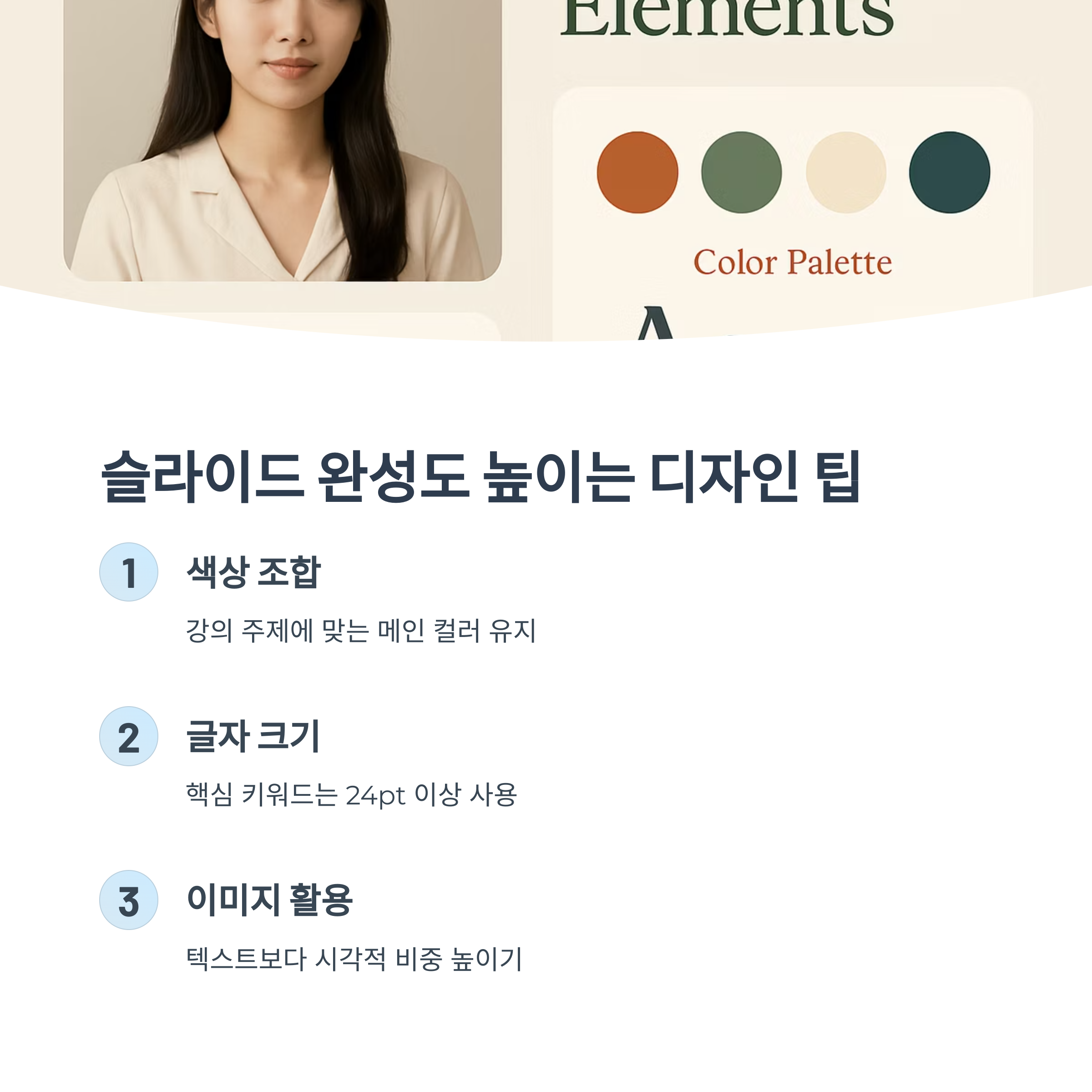 | 색상 조합 | 강의 주제에 맞는 메인 컬러 유지 |