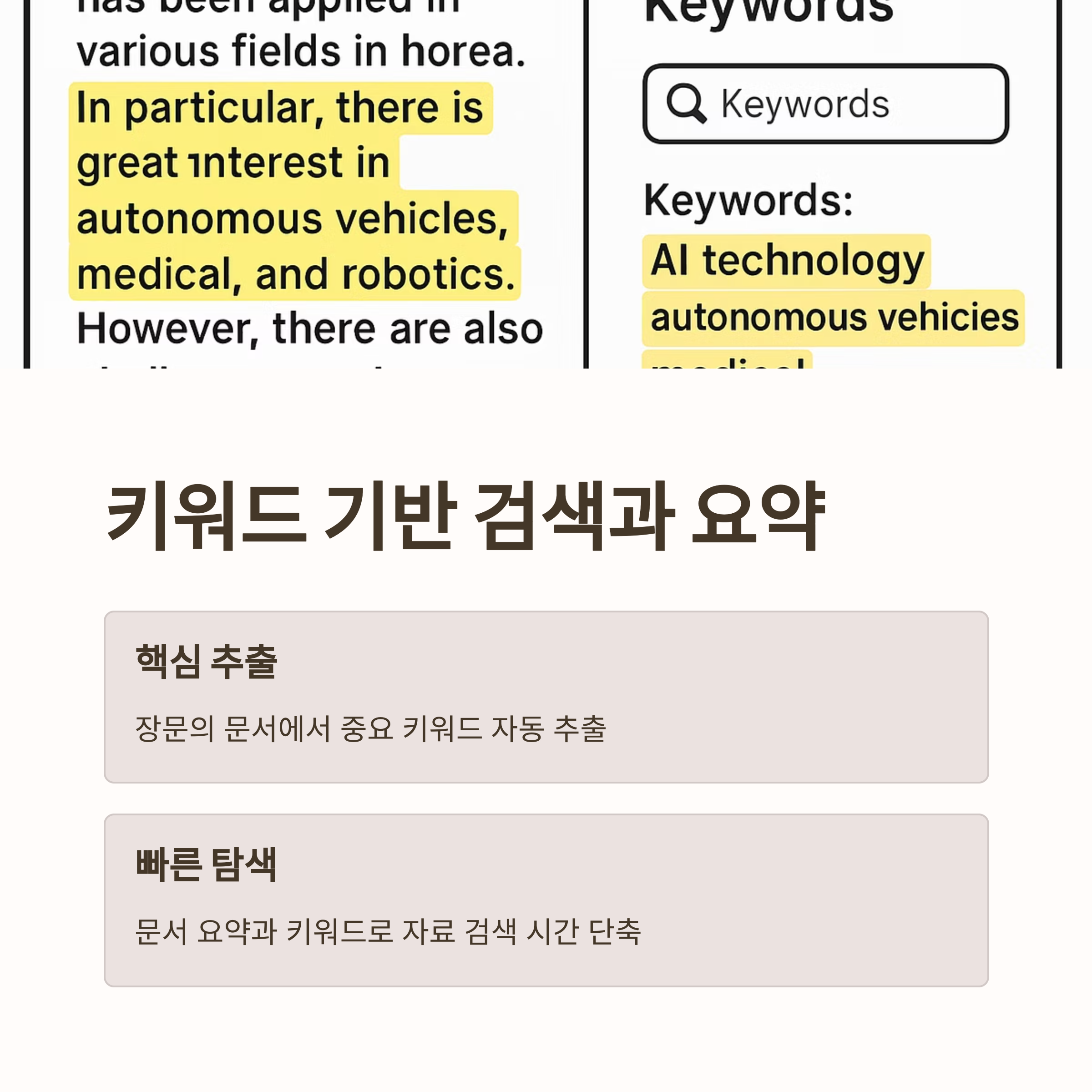 장문의 문서 속 핵심 키워드만 뽑아볼 수 있는 기능도 인기입니다.
