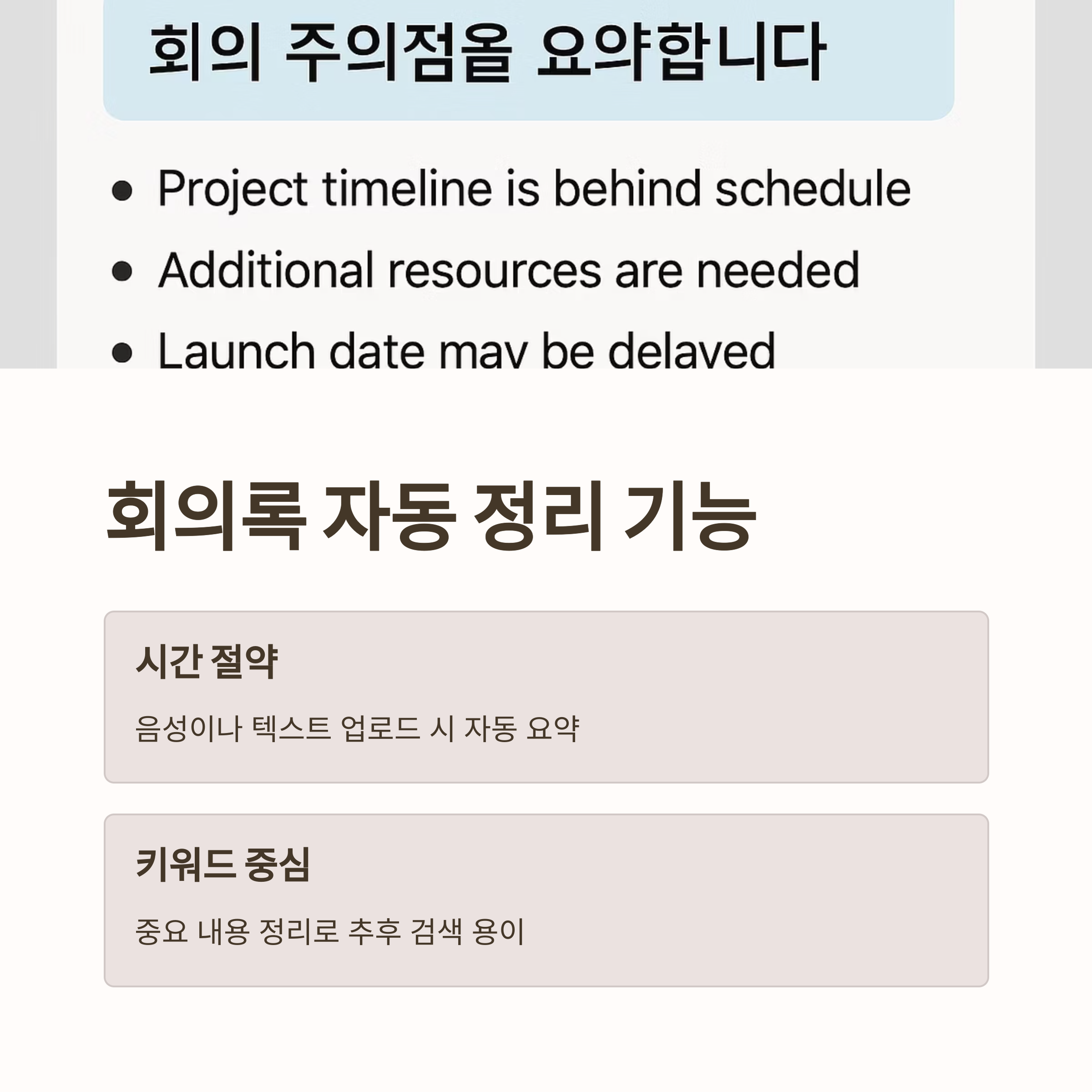업무 커뮤니케이션 이메일, 보고서 요약, 회의록