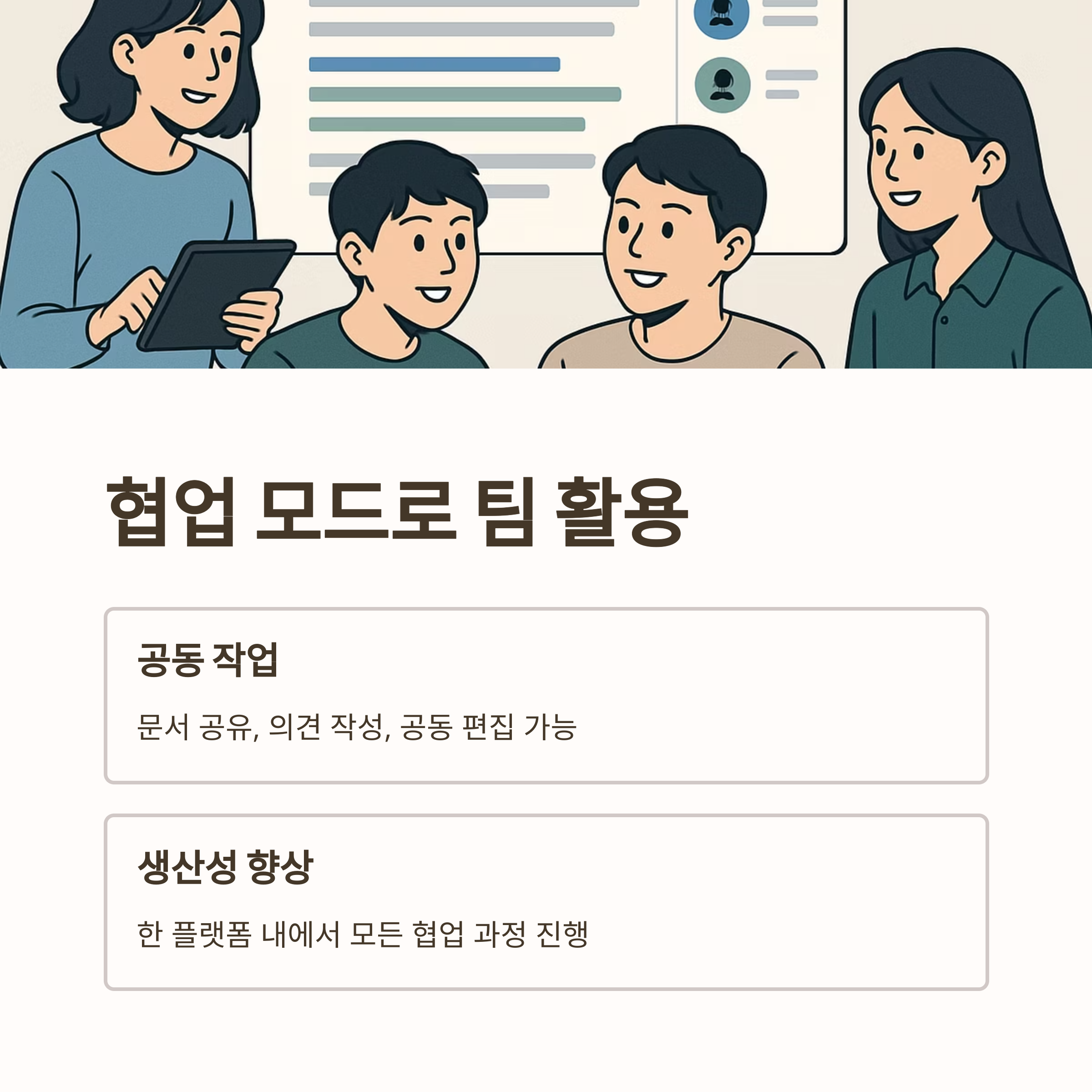문서 공유, 의견 작성, 공동 편집까지 한 플랫폼 안에서 가능합니다.