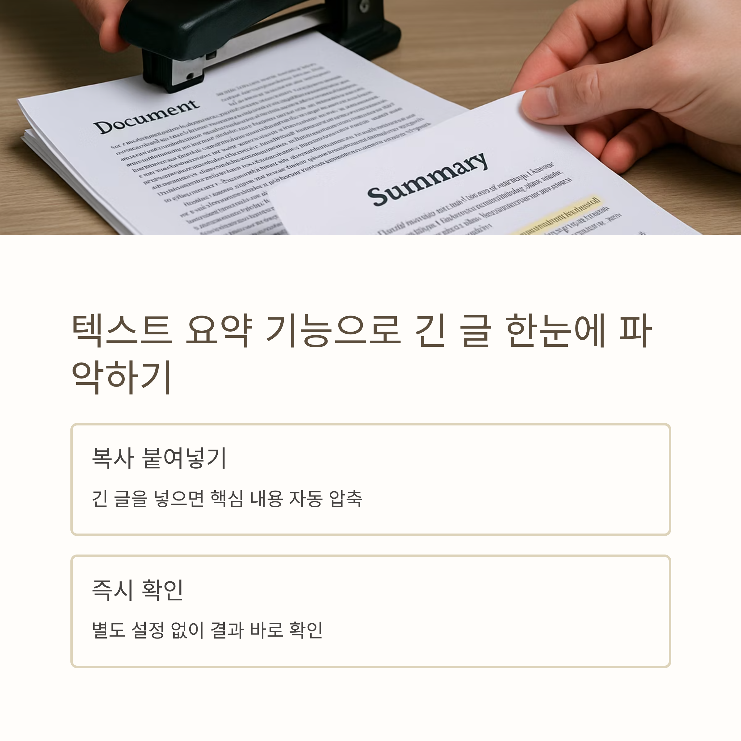 핵심 내용을 자동으로 압축해주며, 사용자는 별도 설정 없이 결과를