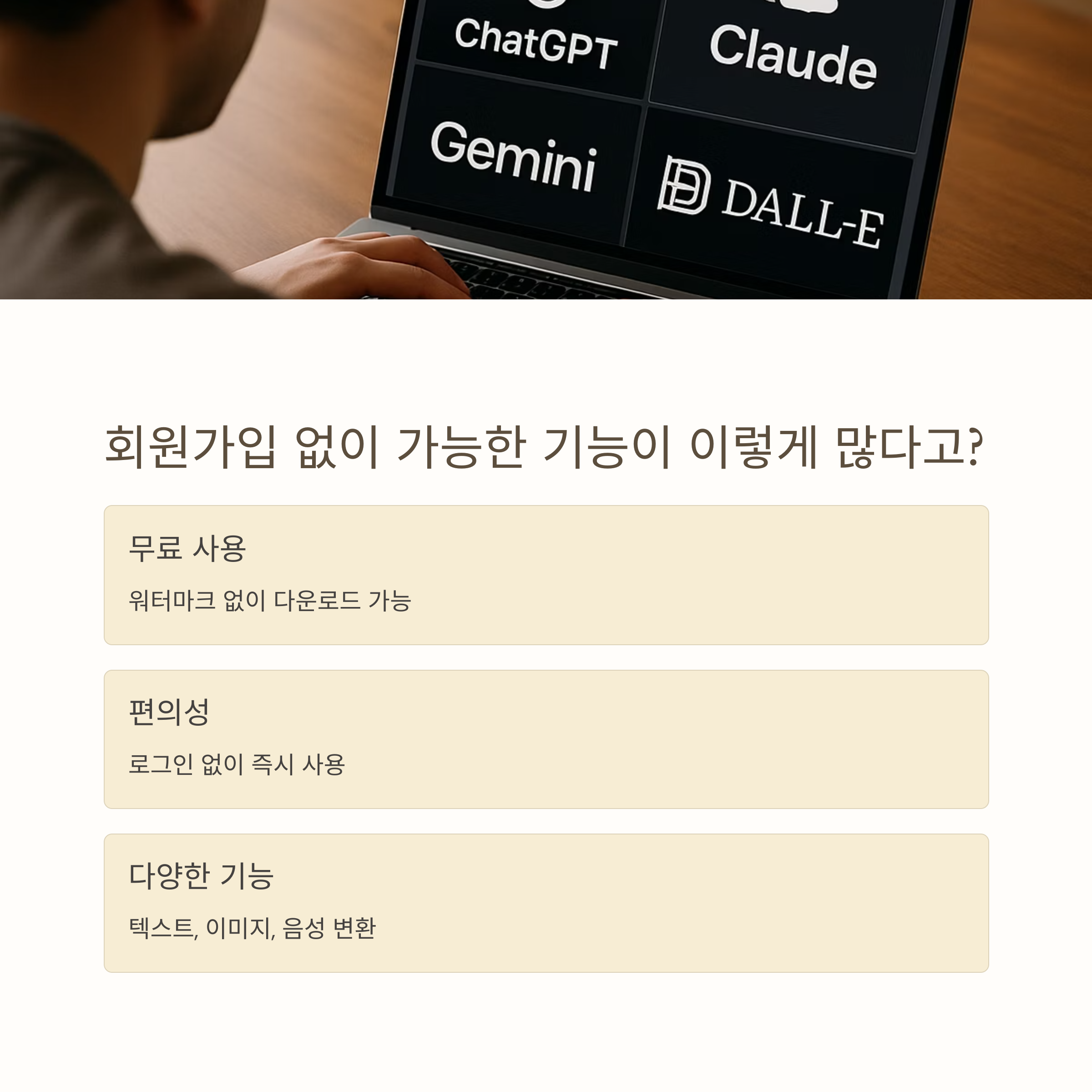 회원가입 없이 AI 요약, 번역, 음성변환, 이미지 생성까지!
