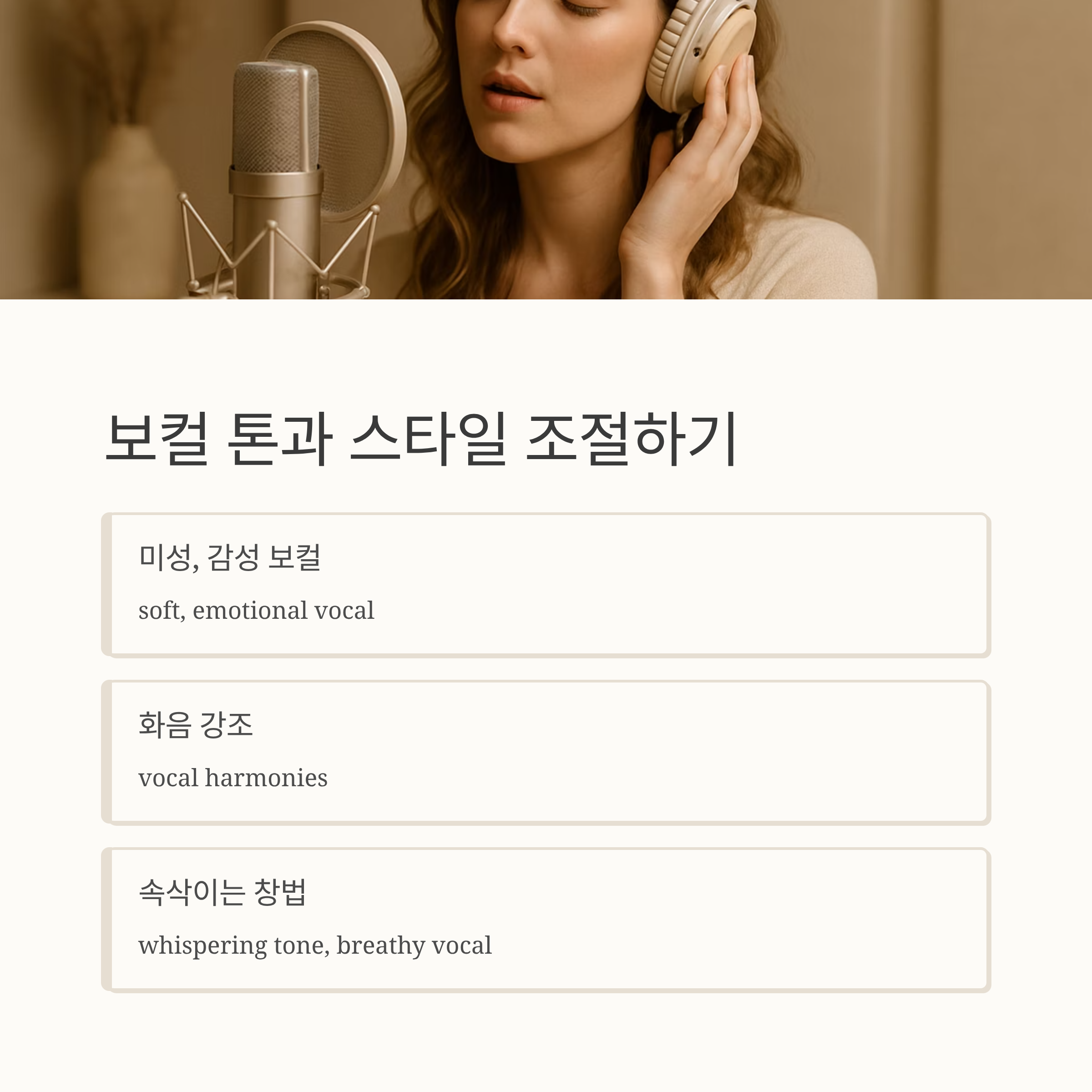 | 보컬 스타일 키워드 | 프롬프트 예시 표현 |