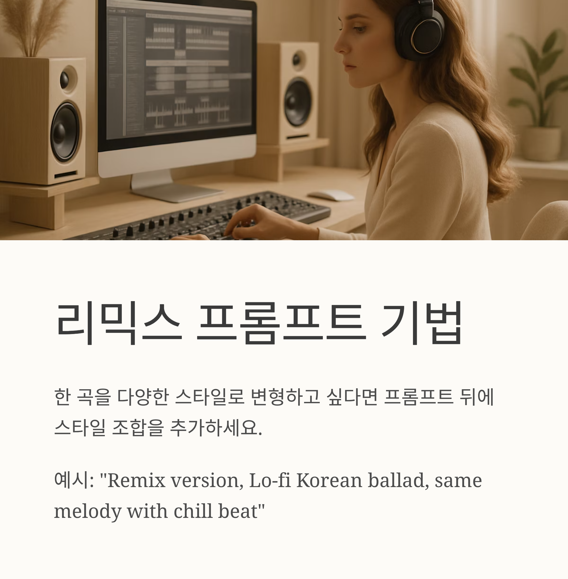 예: "Remix version, Lo-fi Korean ballad, same melody with chill beat"