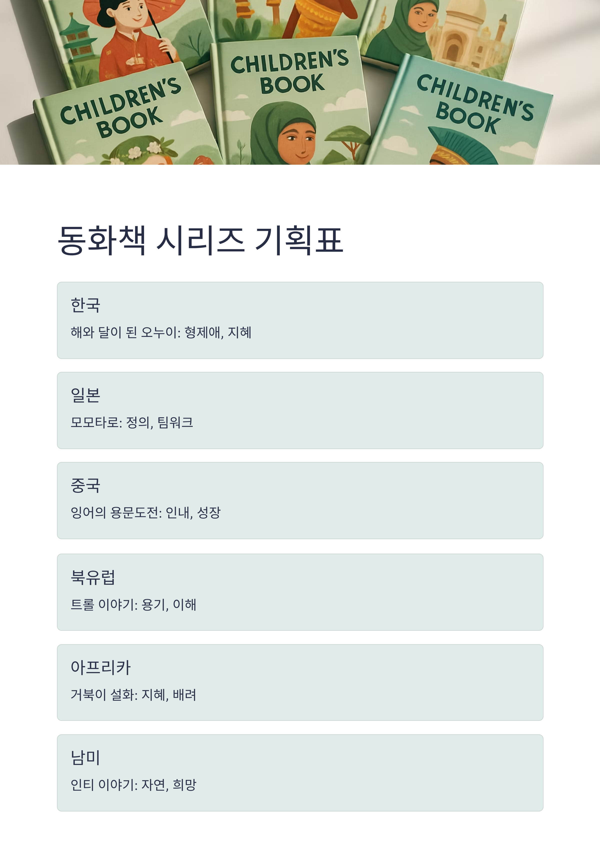 동화책 시리즈 기획표: 나라별 구성과 주제