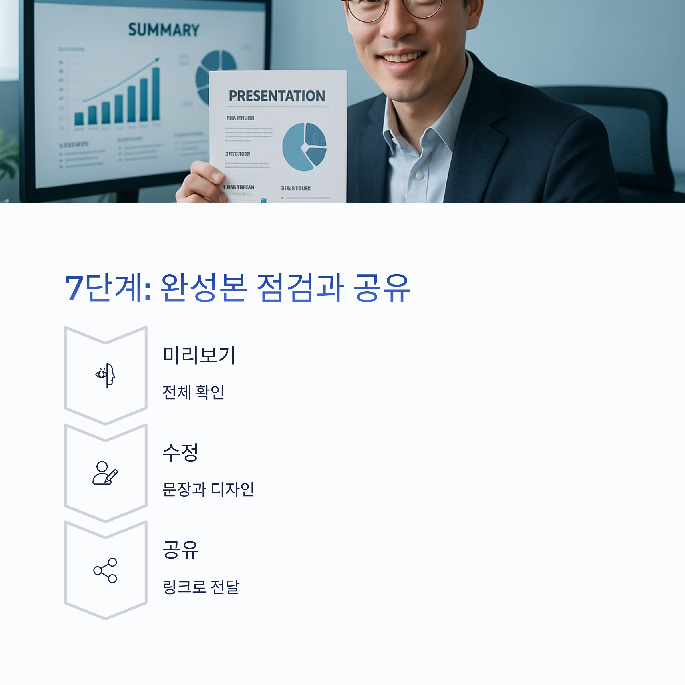 완성된 프레젠테이션을 Tome AI 미리보기 모드에서 확인하고, 필요 시