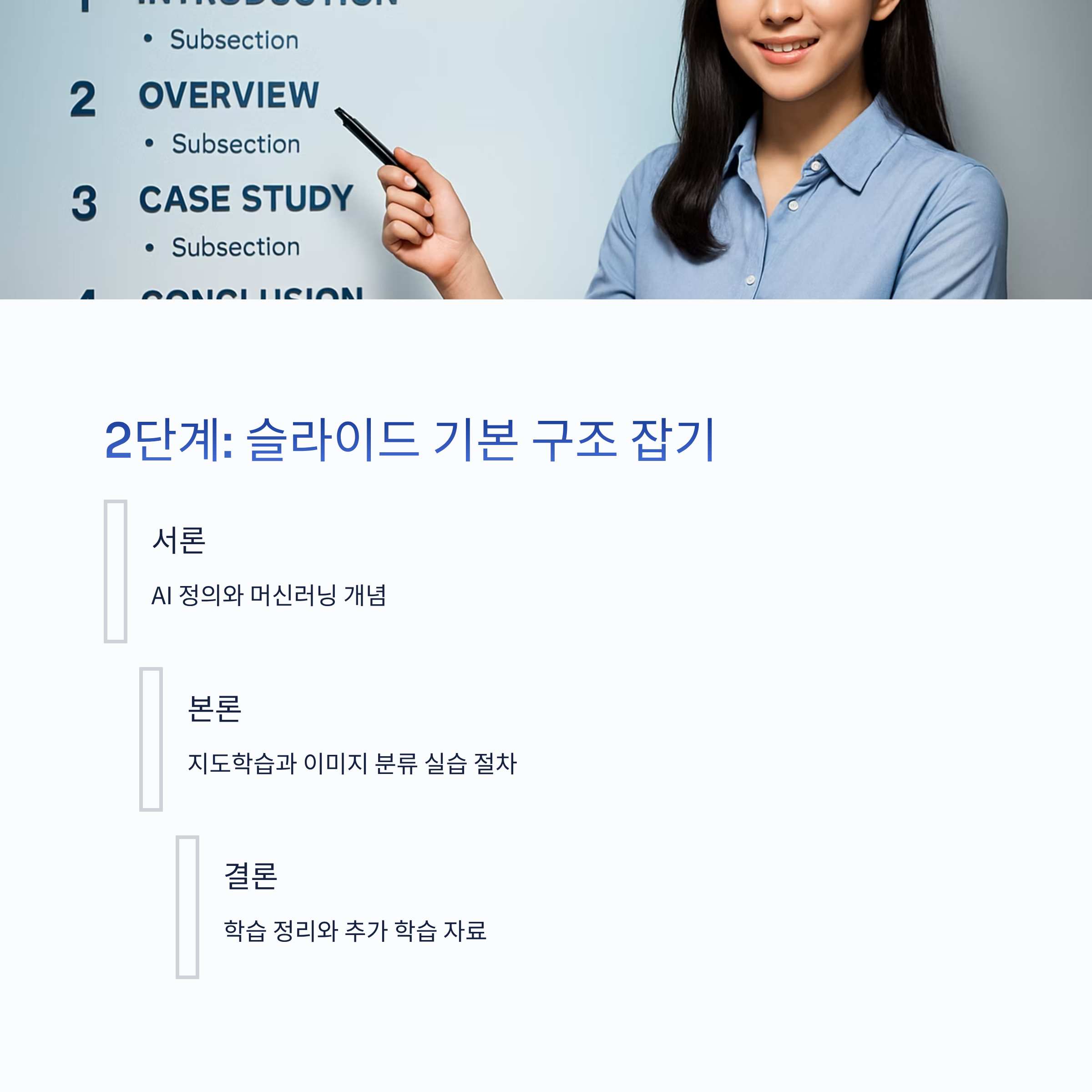 만들어 줍니다. 예를 들어, 서론에는 AI의 정의와 머신러닝 개념, 본론에는