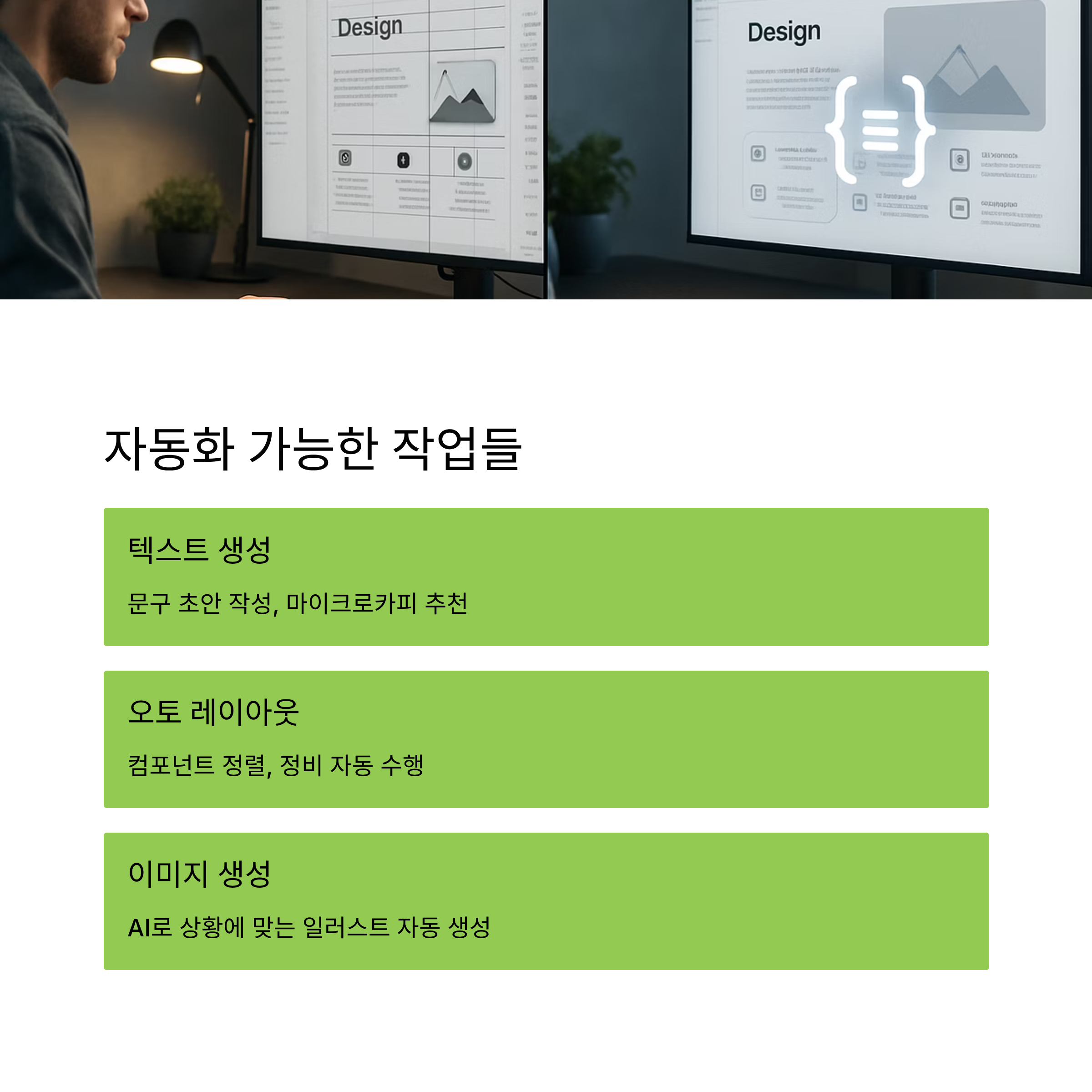 예를 들어 반복되는 컴포넌트 배치나 피드백 반영을 AI 기능으로 대체하면
