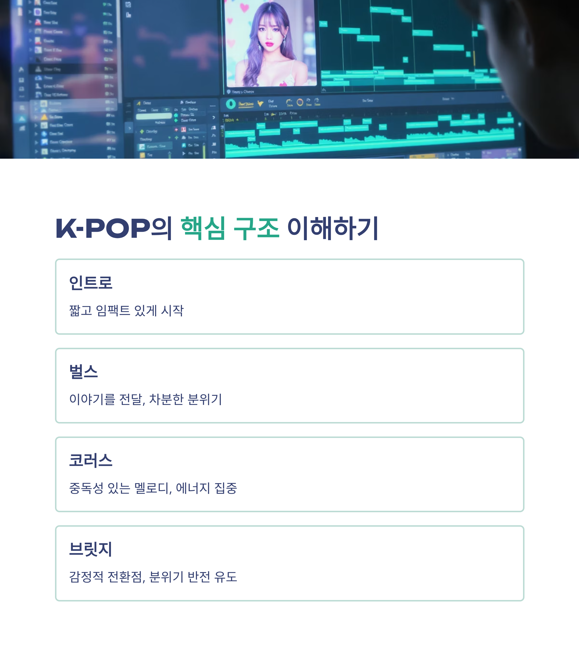 K-POP은 '한 번 들으면 안 잊히는' 훅이 생명입니다.