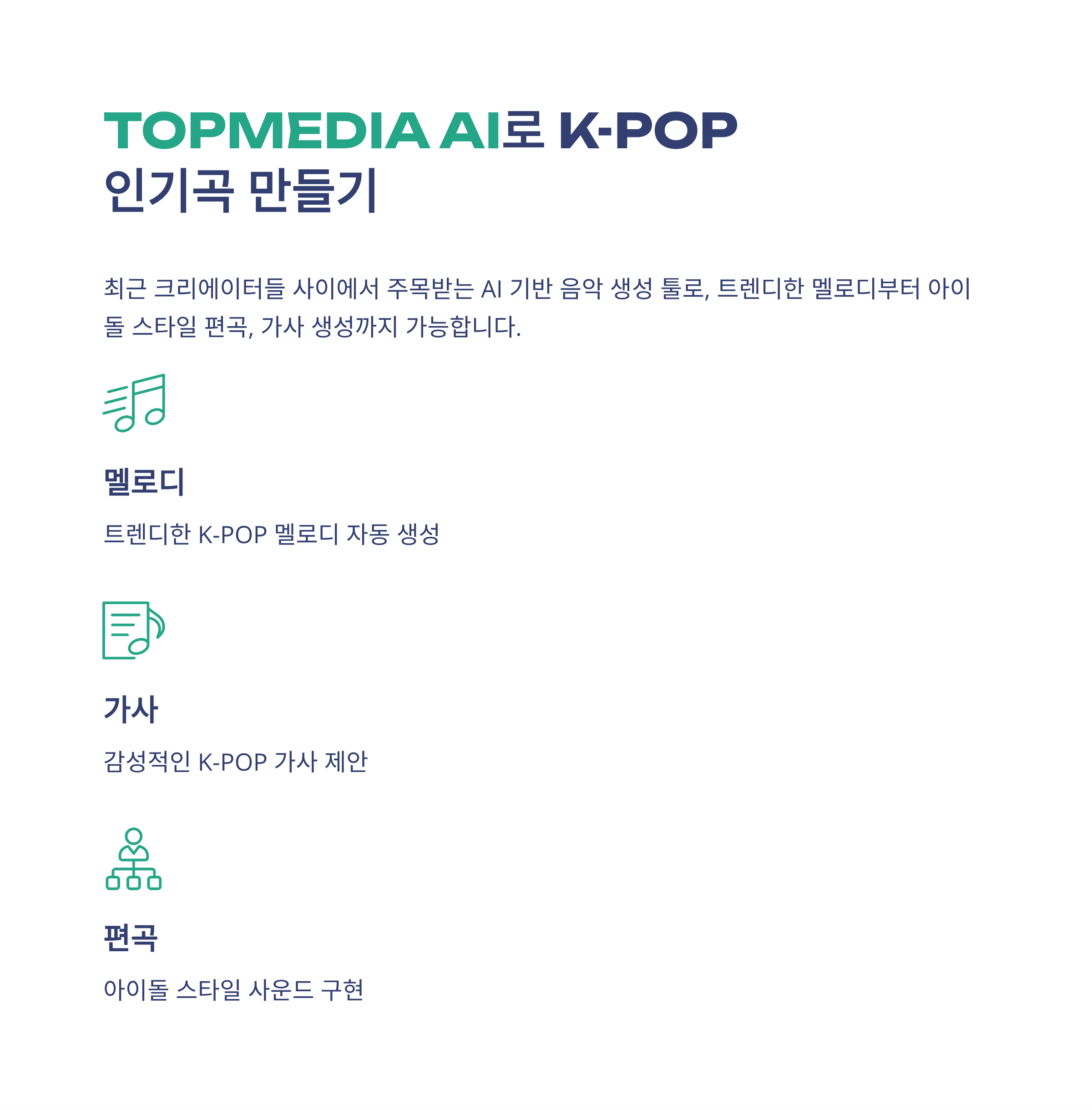 TOPMEDIA AI를 활용하면 트렌디한 멜로디, 아이돌 스타일 편곡,