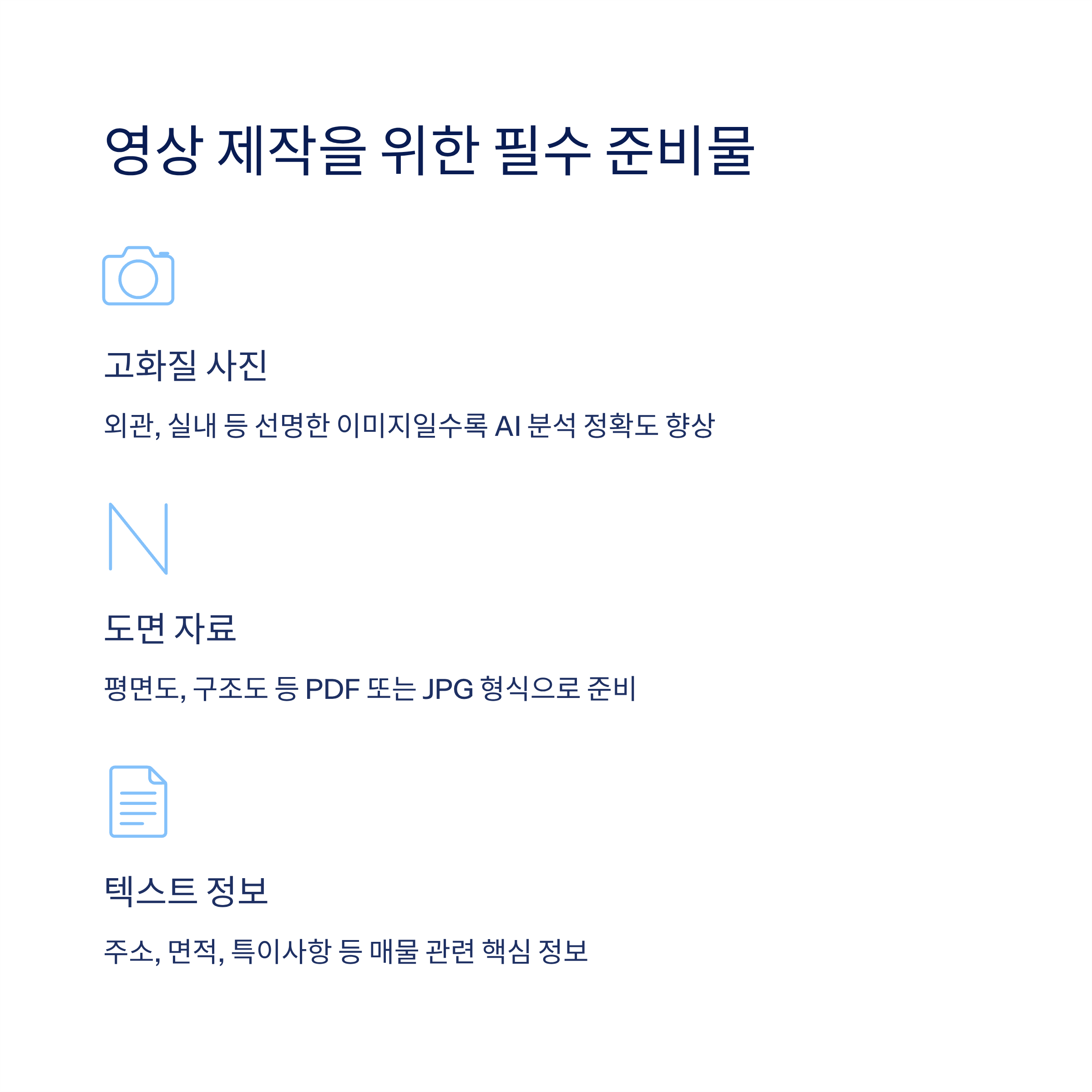 16초25초 : 핵심 정보(면적, 위치, 가격 등)30초 : 연락처 및 콜투액션(Call to Action)