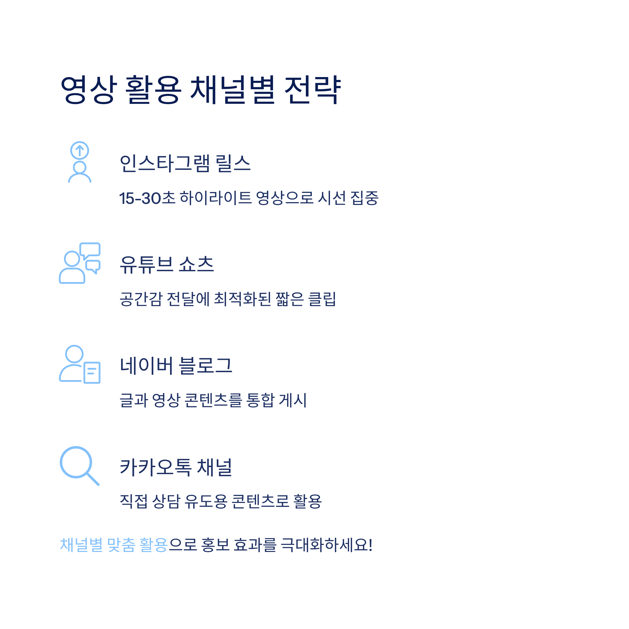 | 카카오톡 채널 | 직접 상담 유도용 콘텐츠 |