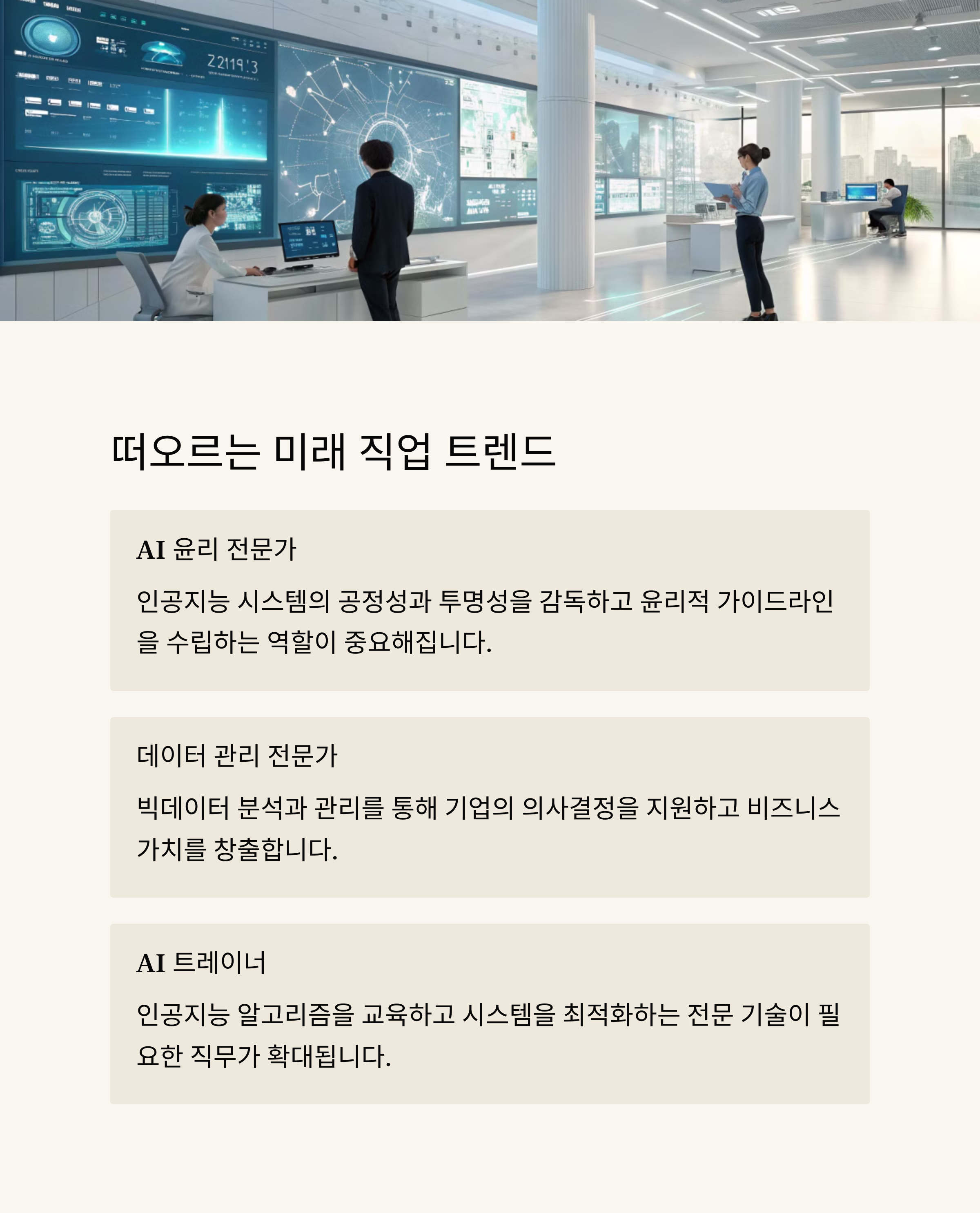 | AI 시스템 감독관 및 윤리 관리 전문가 | AI 시스템의 윤리적이고 올바른 운영을 관리해야 하기 때문 |