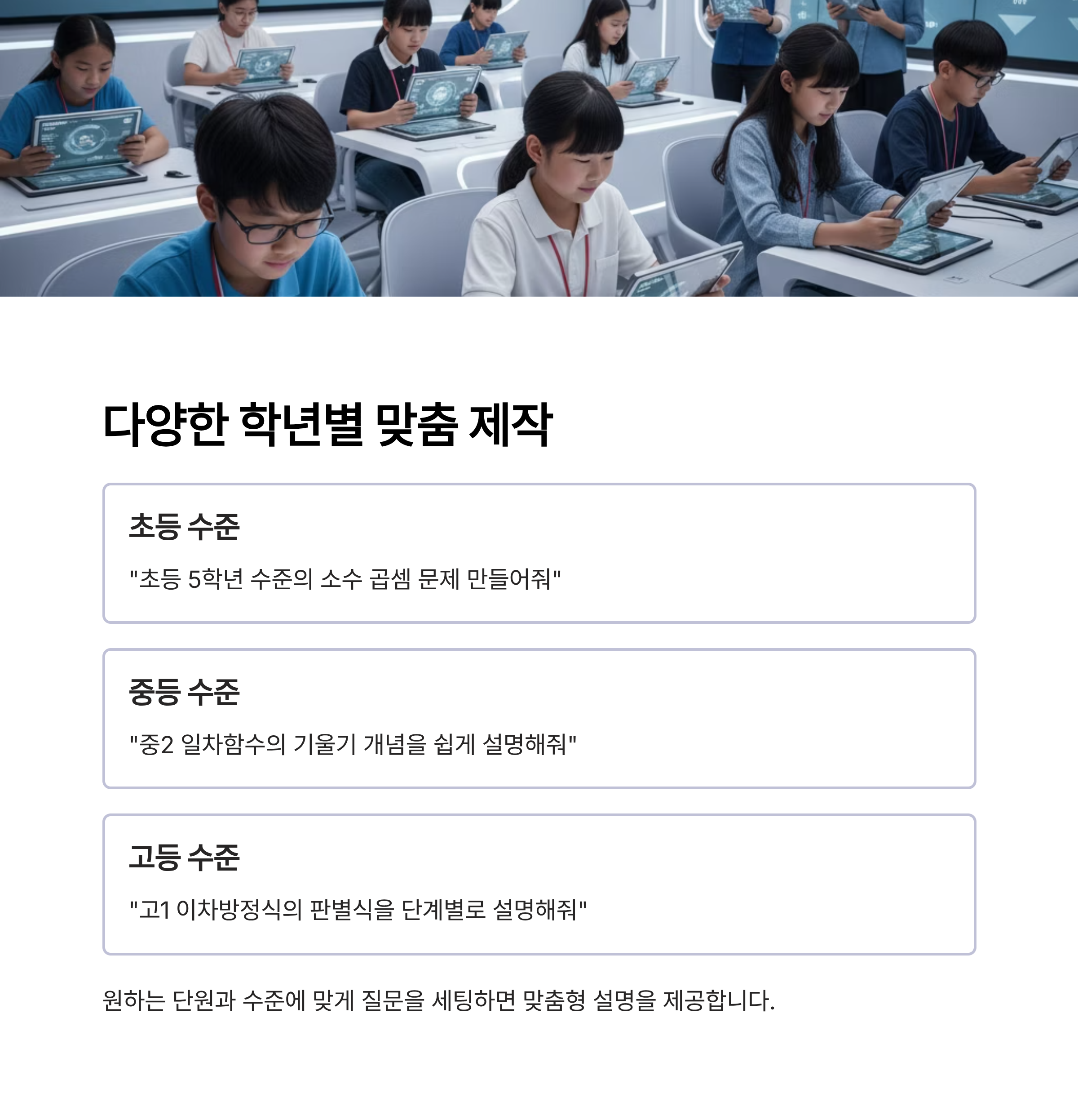 특히 수학에서는 문제풀이 설명, 힌트 제공,