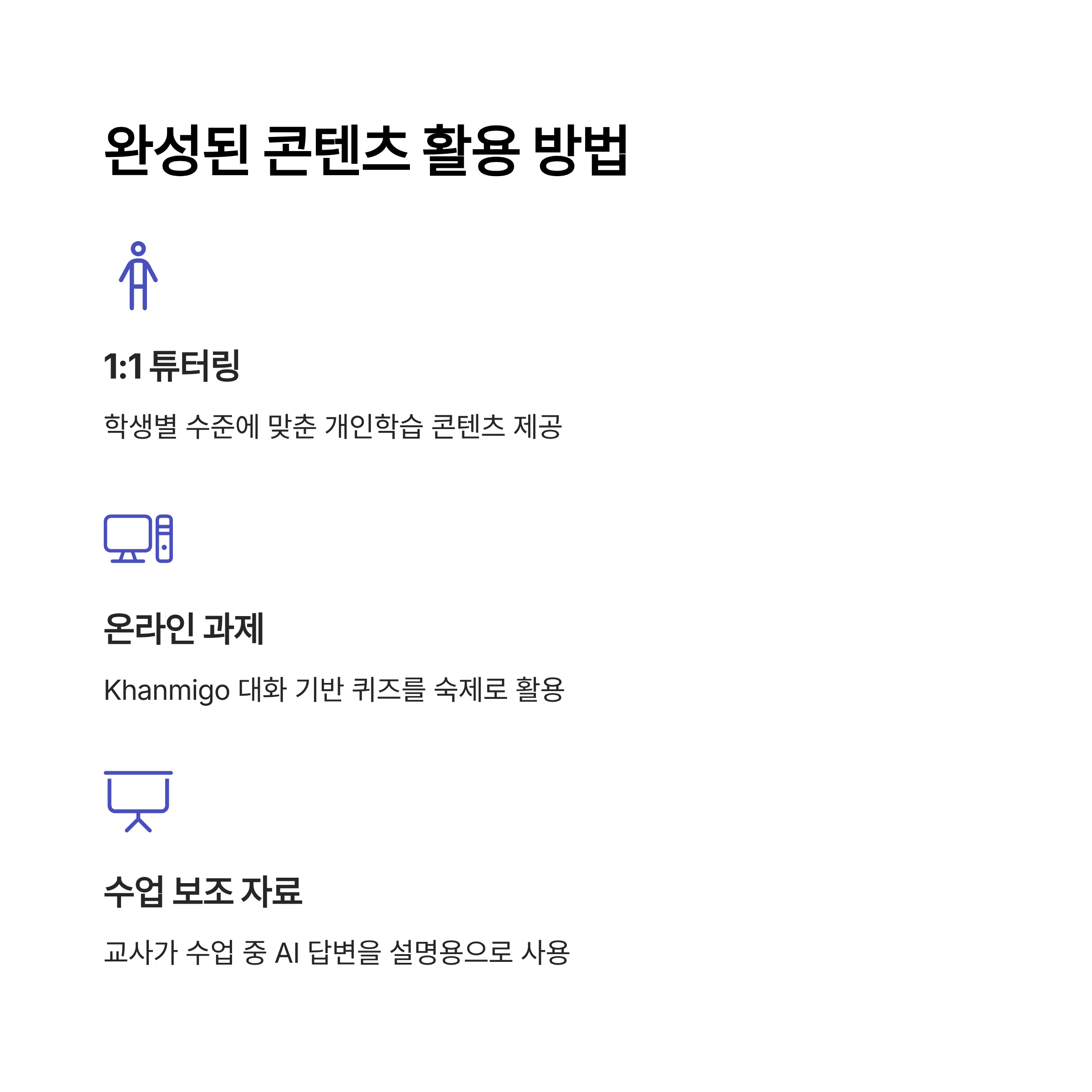 | 수업 보조 자료 | 교사가 수업 중 Khanmigo 답변 예시를 설명용으로 사용 |