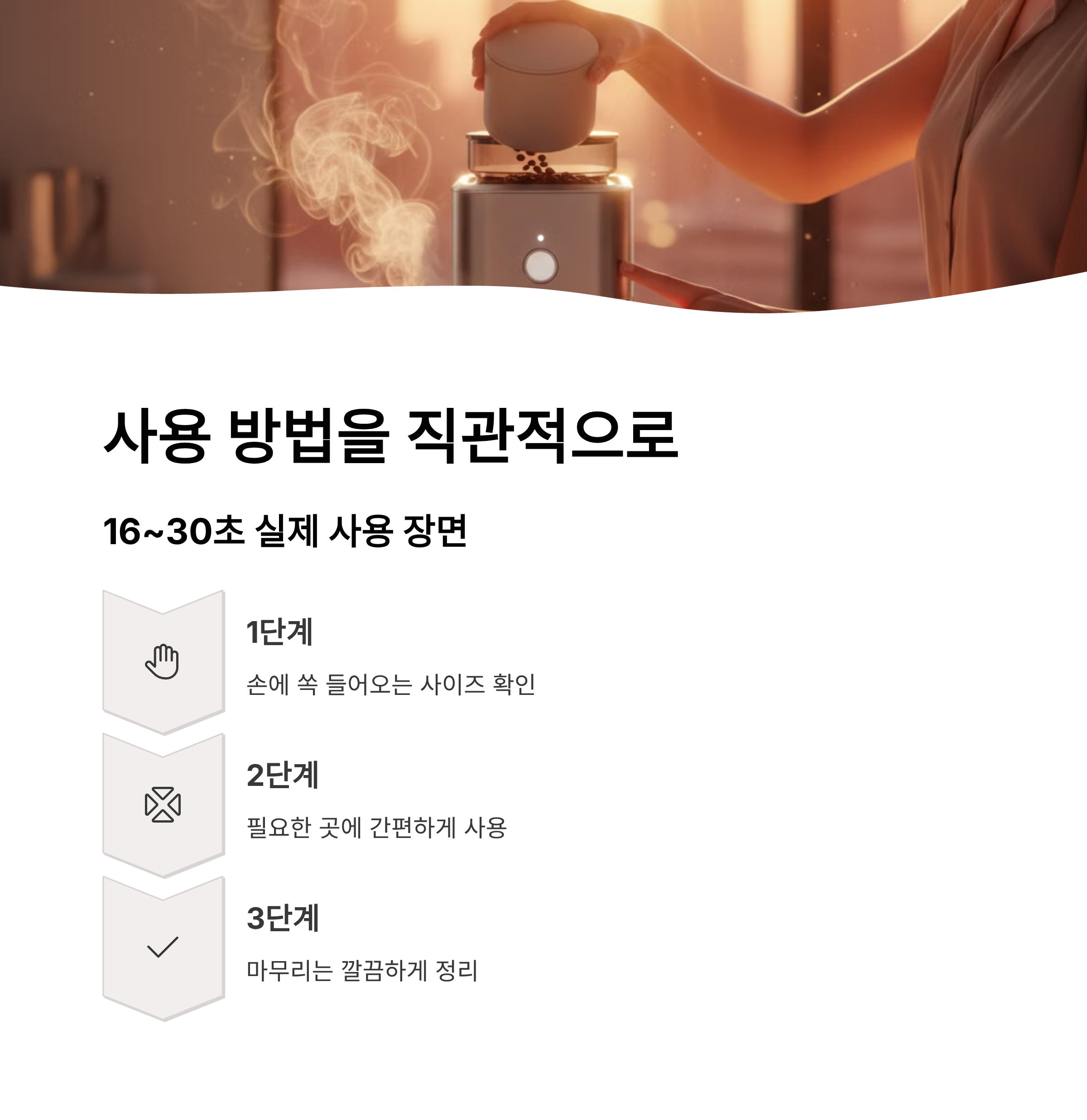 | 1단계 | 손에 쏙 들어오는 사이즈 확인 |